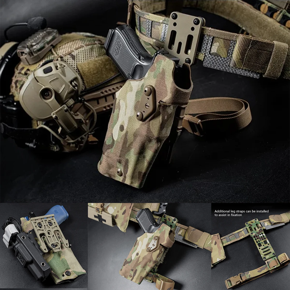 Adaptador de funda modular táctica, accesorio de funda de 3 agujeros, Kit de correa para pierna MHA, cinturón de batalla MOLLE QLS MLS ELS, accesorios de caza