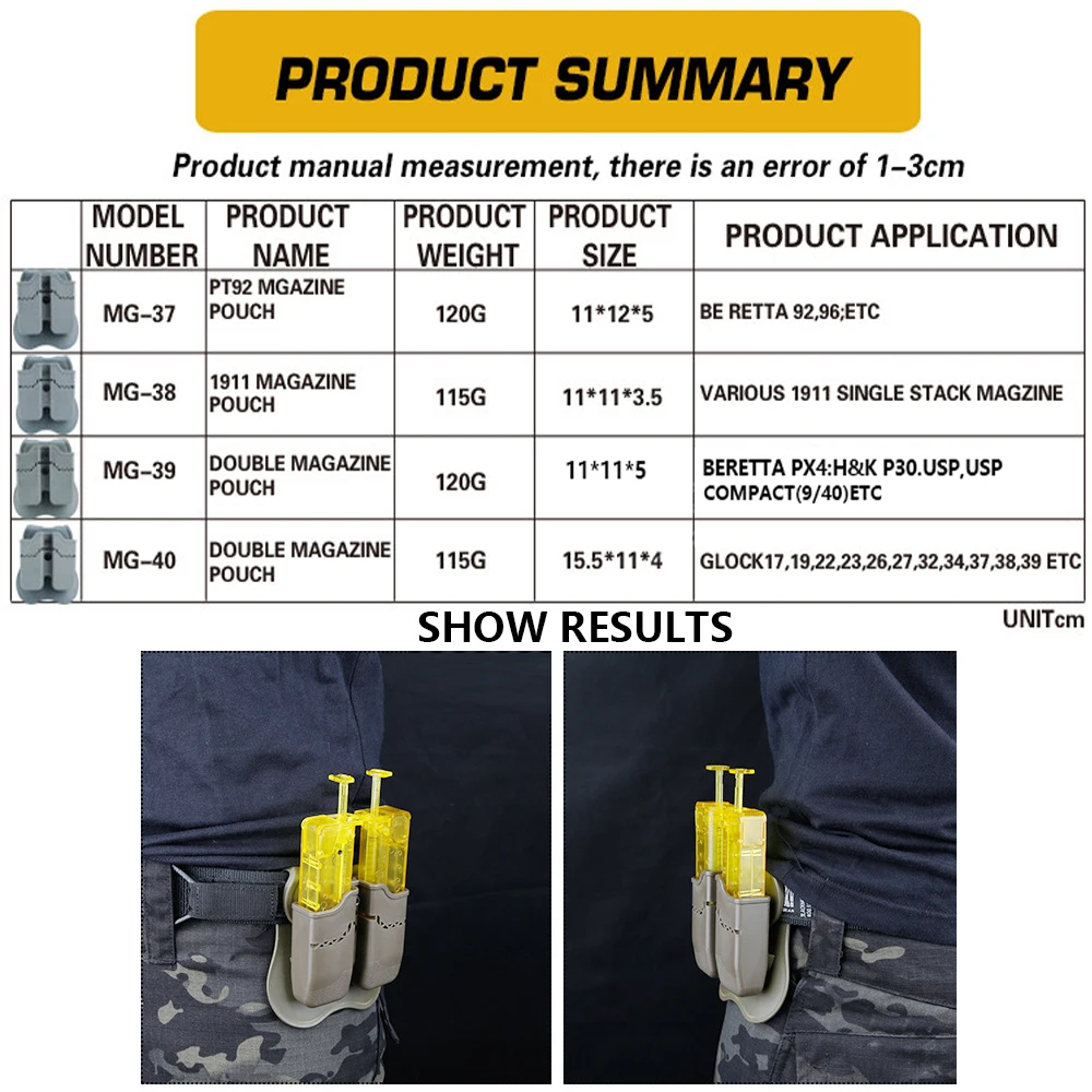 Funda de Airsoft para revistas, funda doble para revistas, compatible con Glock 17/19/22/23/26/27/32/34/37/38/39 1991, RETTA 92 PX4, de tiro rápido