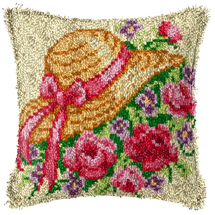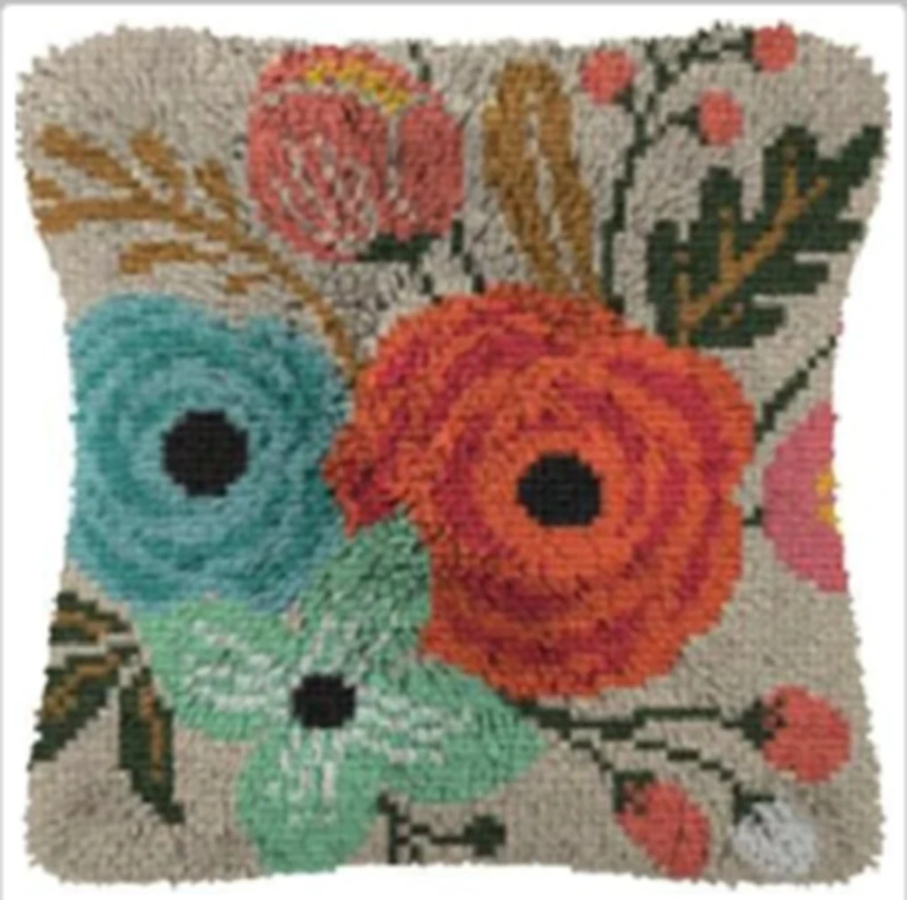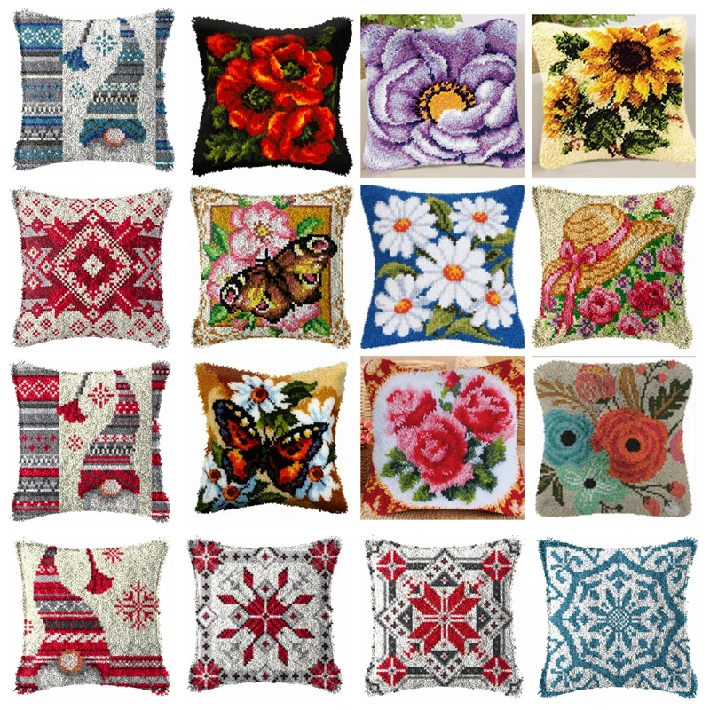 Butterfly Flowers Embroidery Pillowcase Latch Hook Pillow Kits Classic Pattern Cross-Stitch DIY Needlework Crocheting Rug Kits