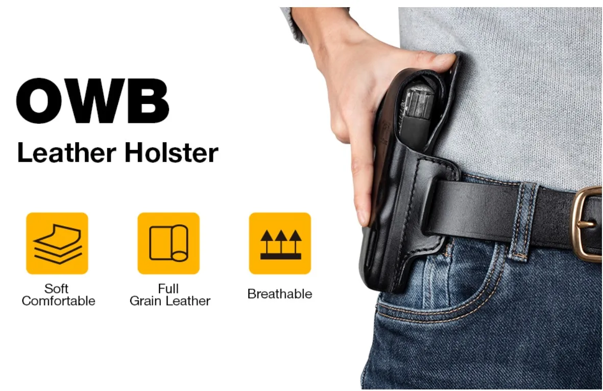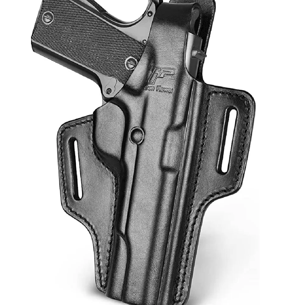 Holster Fit for Colt 1911 and most1911 5'' 2 Slot Full Grain Leather OWB Thumb Break Pistol Holder Hunting Tactial Right Gun bag