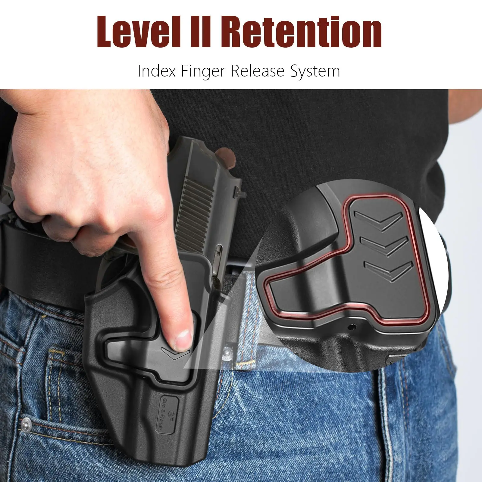 Retención de nivel II activada por el dedo índice: ofrece mayor seguridad para armas de fuego con un mecanismo de liberación natural e intuitivo para un acceso rápido