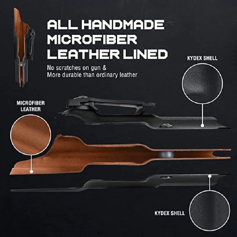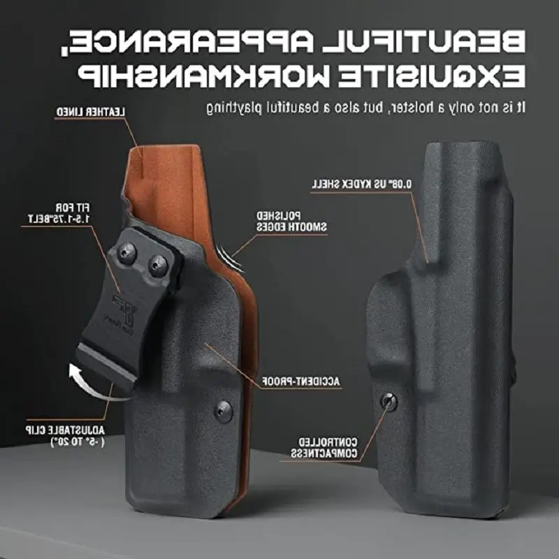 No solo es muy preciso, sino también resistente y duradero, y puede ocultarse y ser portátil, por lo quePuede protegerse en cualquier momento y en cualquier lugar.【Artesanía KYDEX de EE. UU. 0,08”】: Nuestra funda utiliza un diseño de precisión de material KYDEX de 0,08”.y también hemos realizado muchas pruebas para garantizar una consistencia, ajuste, calidad, durabilidad incomparables.ligereza, comodidad y características uniformes en todas nuestras fundas.【CLIP DE CINTURÓN FUERTE Y DURADERO】: Nuestra clip para cinturón con funda para pistola se ajusta con un ancho de cinturón inferior a 1,5 pulgadas,No solo es fácil de usar, sino que es más importante, un clip para cinturón resistente y duradero puede brindarle másEvite por completo accidentes y ponga en peligro su vida.