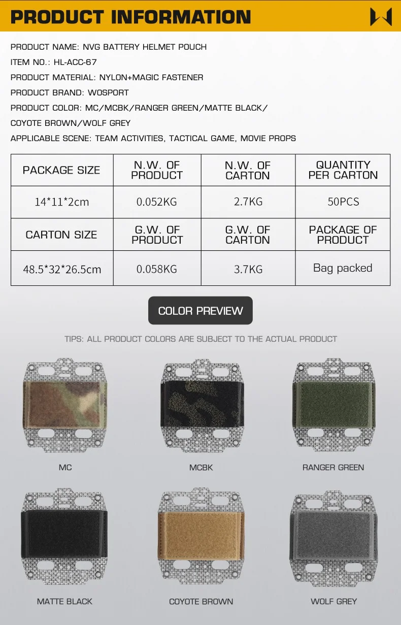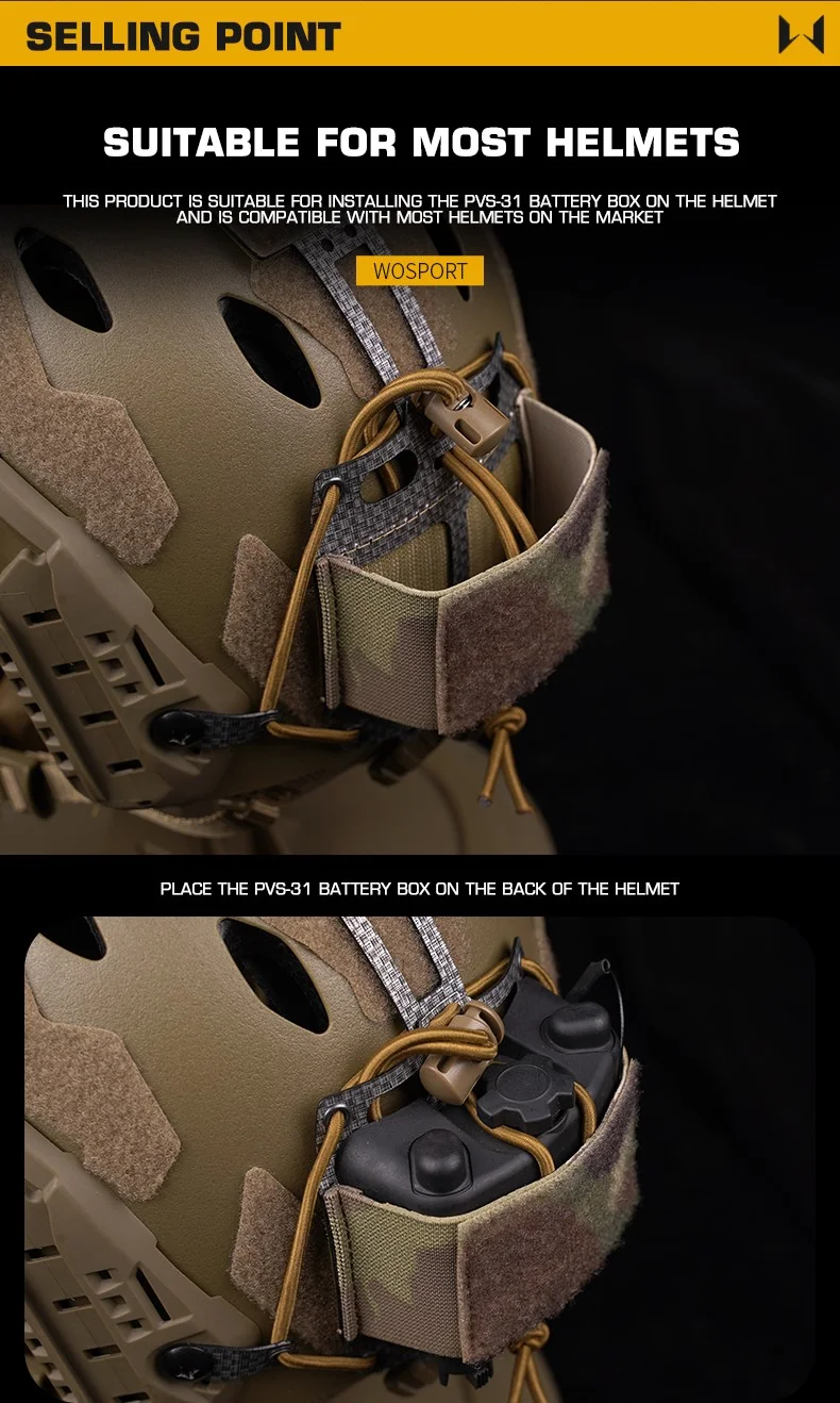 Funda de batería táctica estilo FERRO PVS31 NVG, sistema de retención rápido para casco, accesorio de almacenamiento ajustable para casco Airsoft