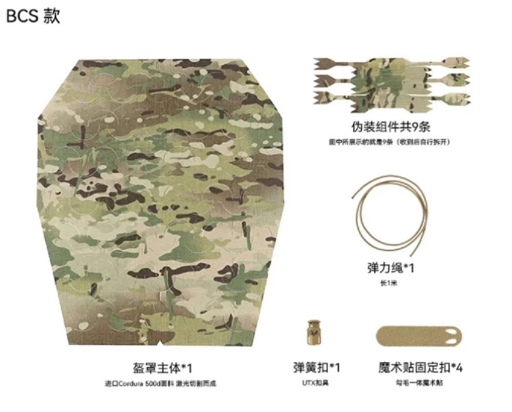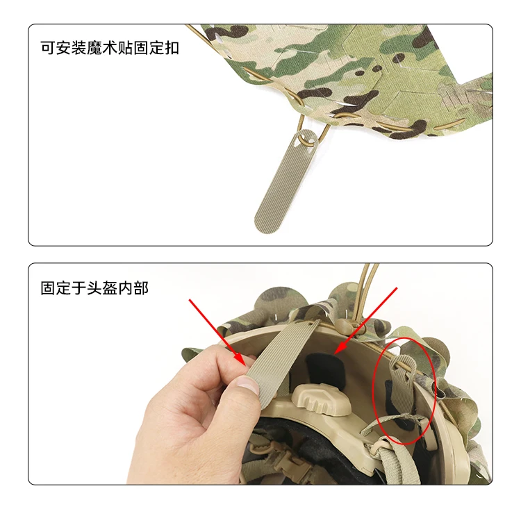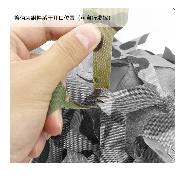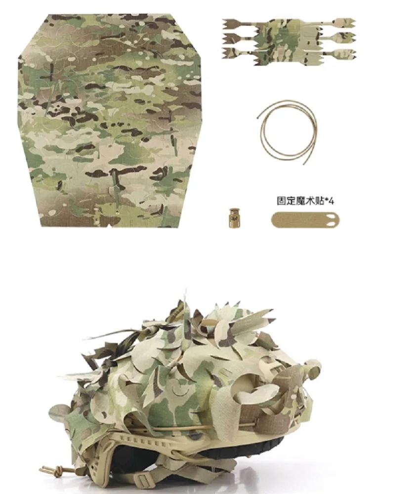 1 juego de productos incluye: funda para casco * 1, tira de camuflaje * 10, cuerda elástica * 1, hebilla ajustable * 1, pegatina de fijación * 4