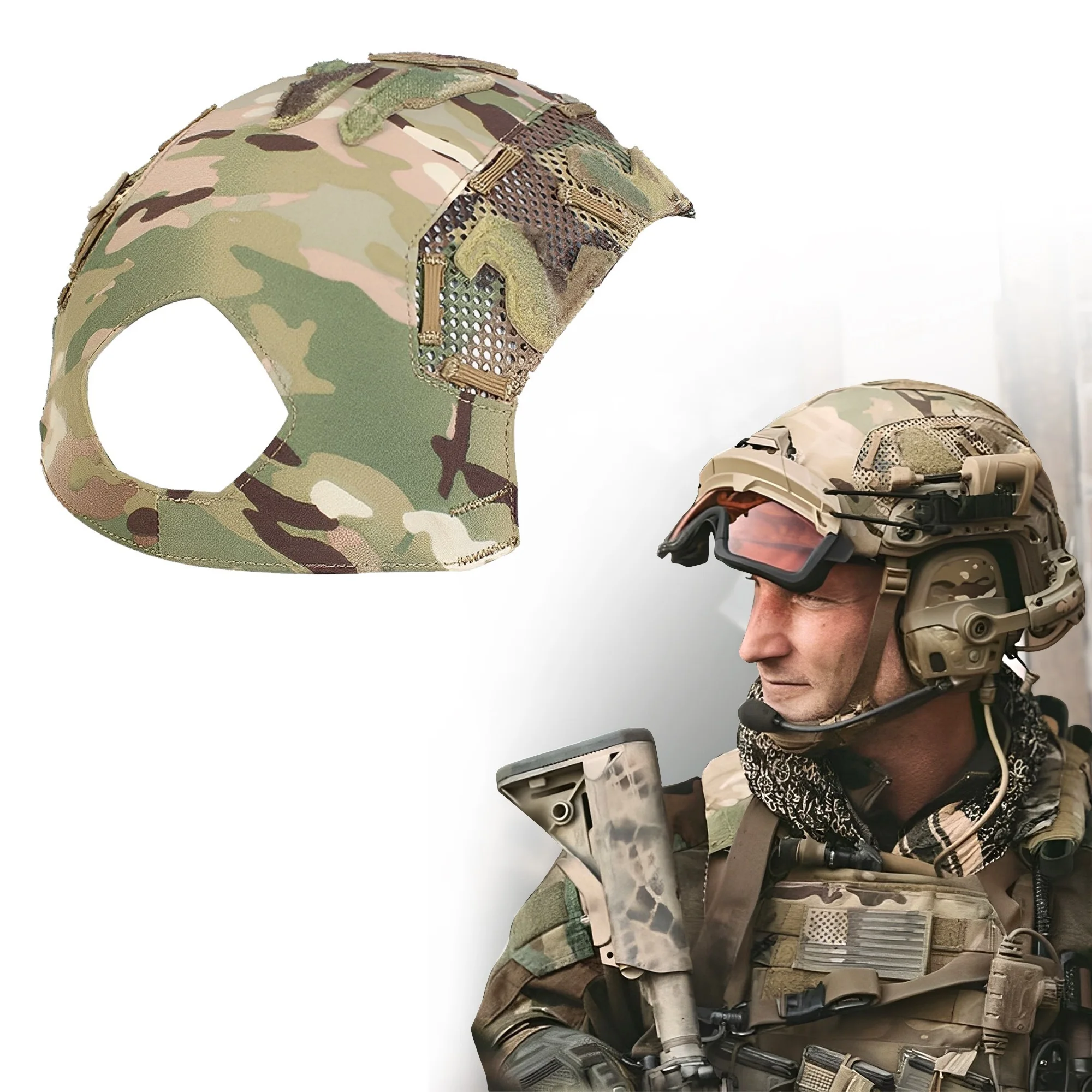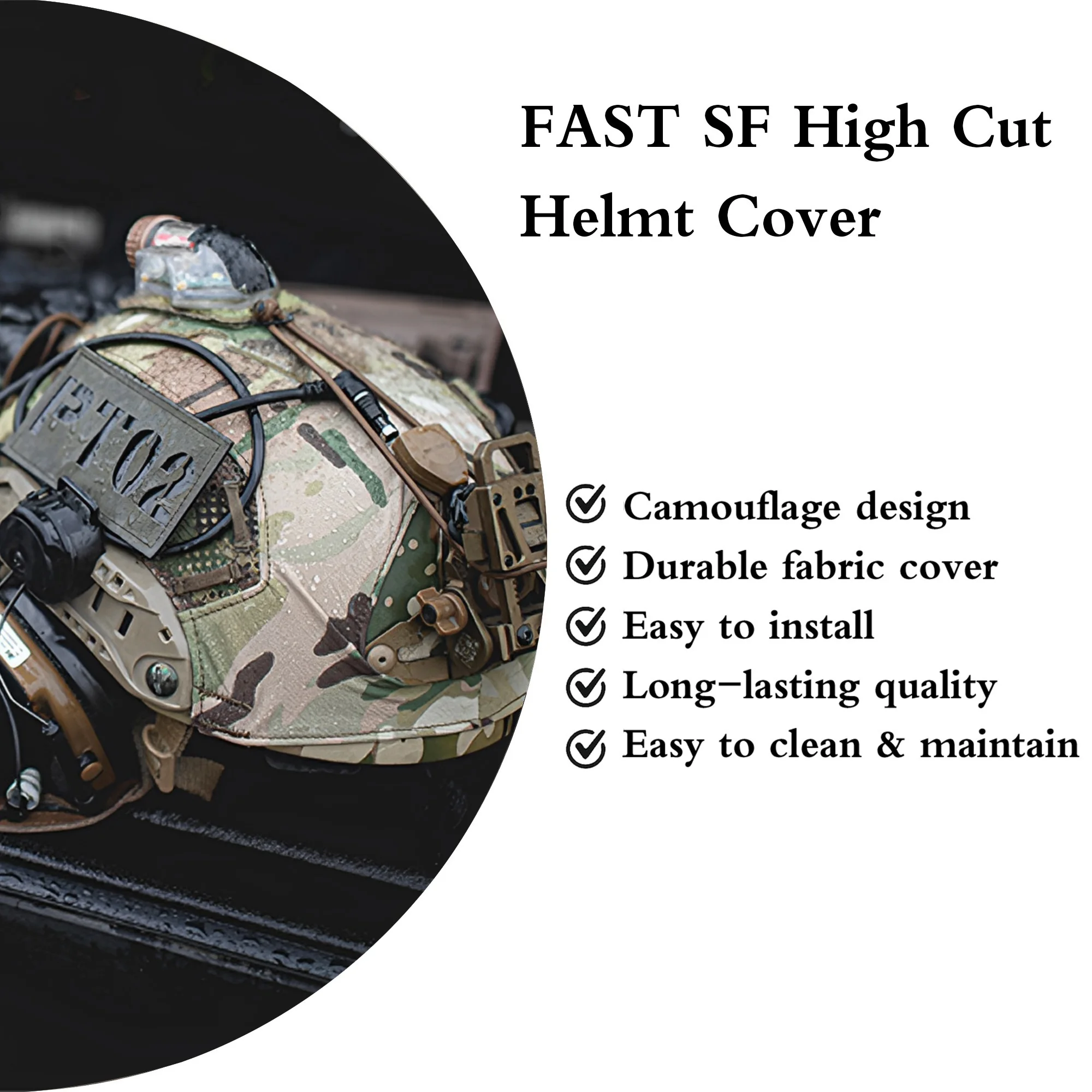 This helmet cover is a new generation helmet cover, designed specifically to fit FAST SF High Cut Helmet. And gives the helmet new cutting edge functionality and universal accessory management.