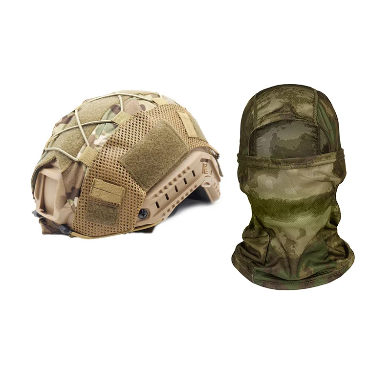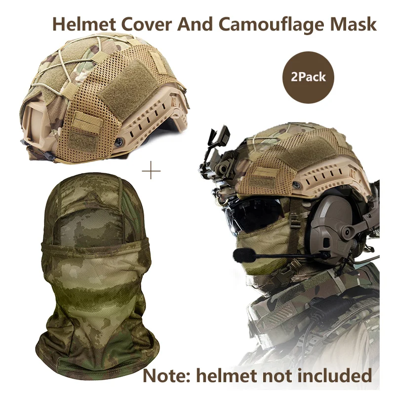 Funda para casco, funda de máscara de tela de camuflaje para casco rápido Airsoft, presillas de nailon y cordón de choque para caza, tiro y juegos de paintball