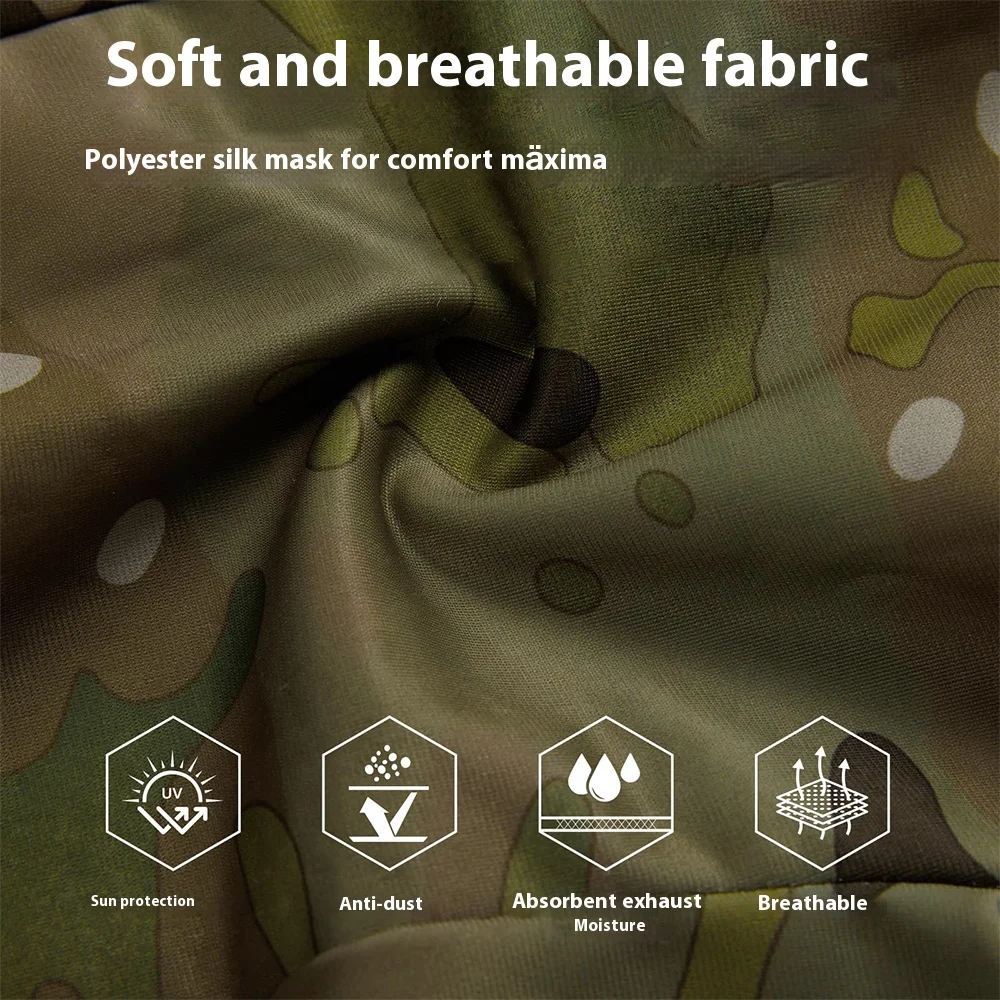 6.La mascarilla de camuflaje es adecuada para ocultarse durante la caza, protección solar durante el ciclismo, cómoda y transpirable, brindando una mejor protección para la cara en juegos de caza, ciclismo y tiro al aire libre.