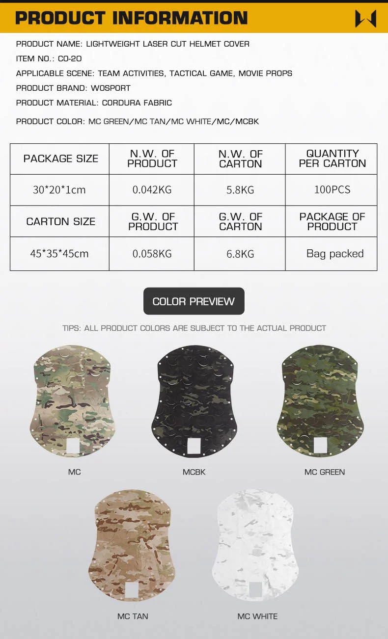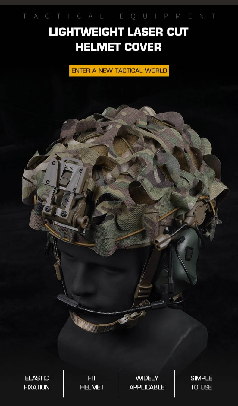 Funda para casco táctico Airsoft, malla 3D, camuflaje, corte láser, forma de hoja, BJ PJ MH, tela para casco, accesorios para casco de caza y paracaidista
