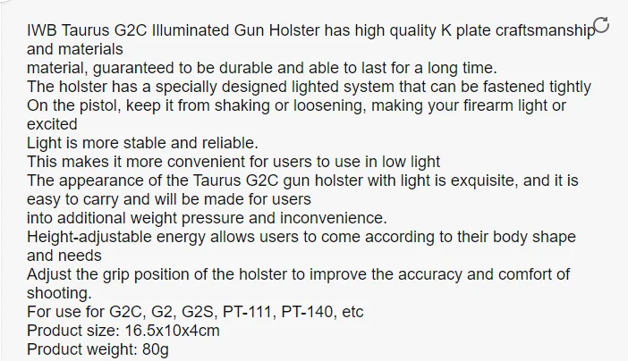 Funda de cintura oculta para mano derecha G2C G2 G2S para G2C G2 G2S con láser ligero IWB funda táctica para caza al aire libre