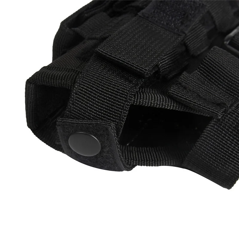 La funda de pistola con fijación Molle se puede usar sola en cualquier chaleco o cinturón Molle.