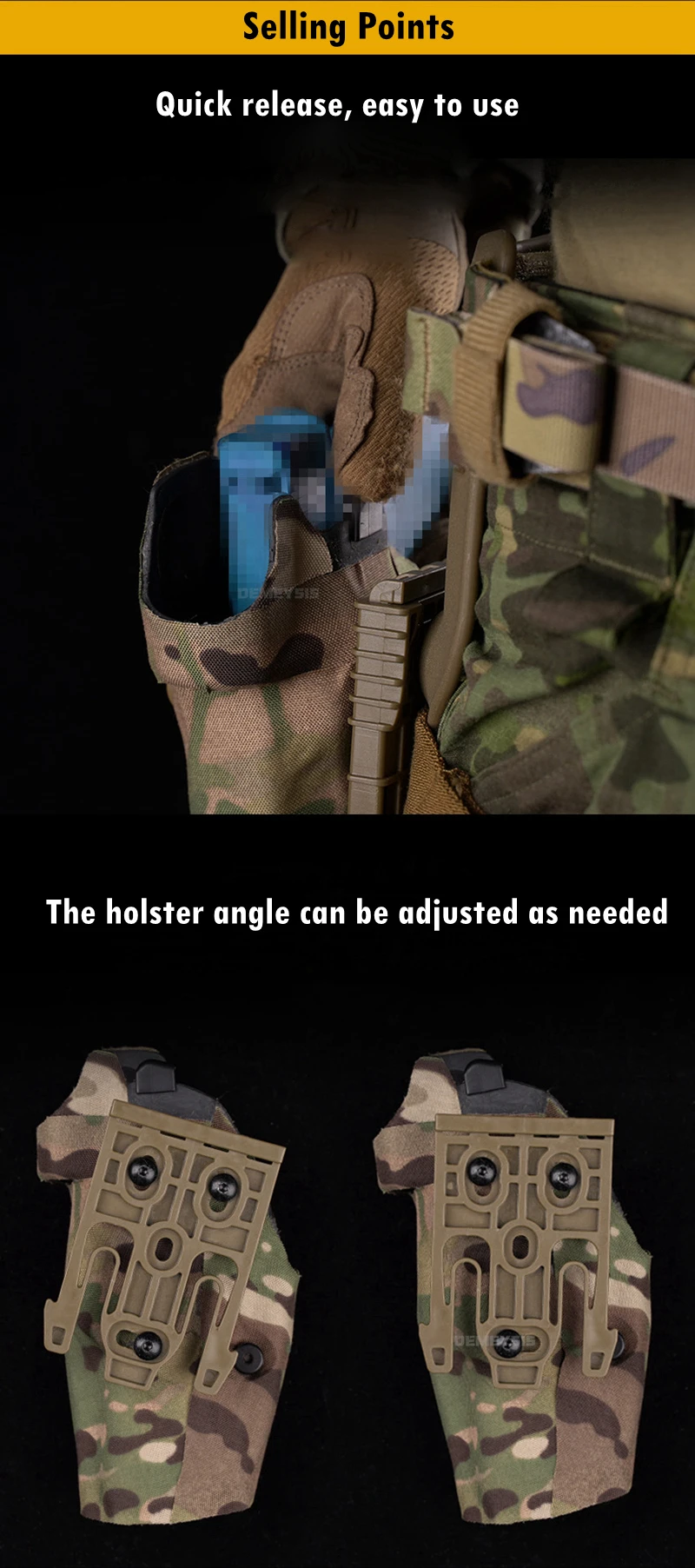 ●Liberación rápida, fácil de usar.El ángulo de la funda se puede ajustar según sea necesario.