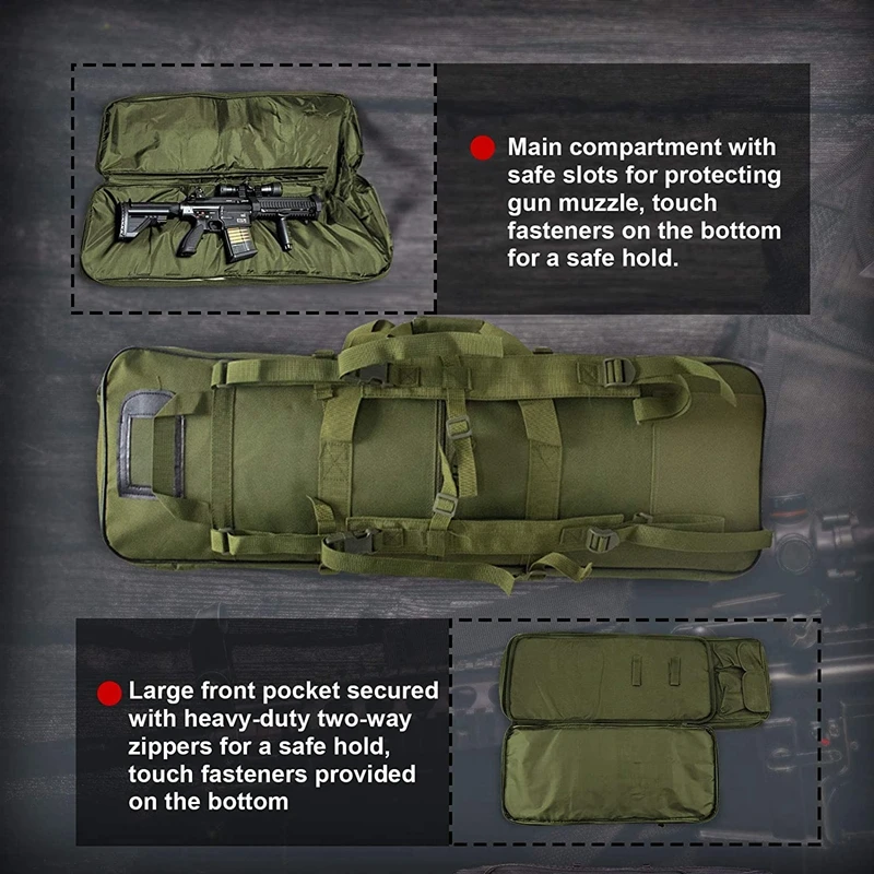 · Bolsa para armas más pequeña capaz de contener un rifle de 28 cm de ancho.