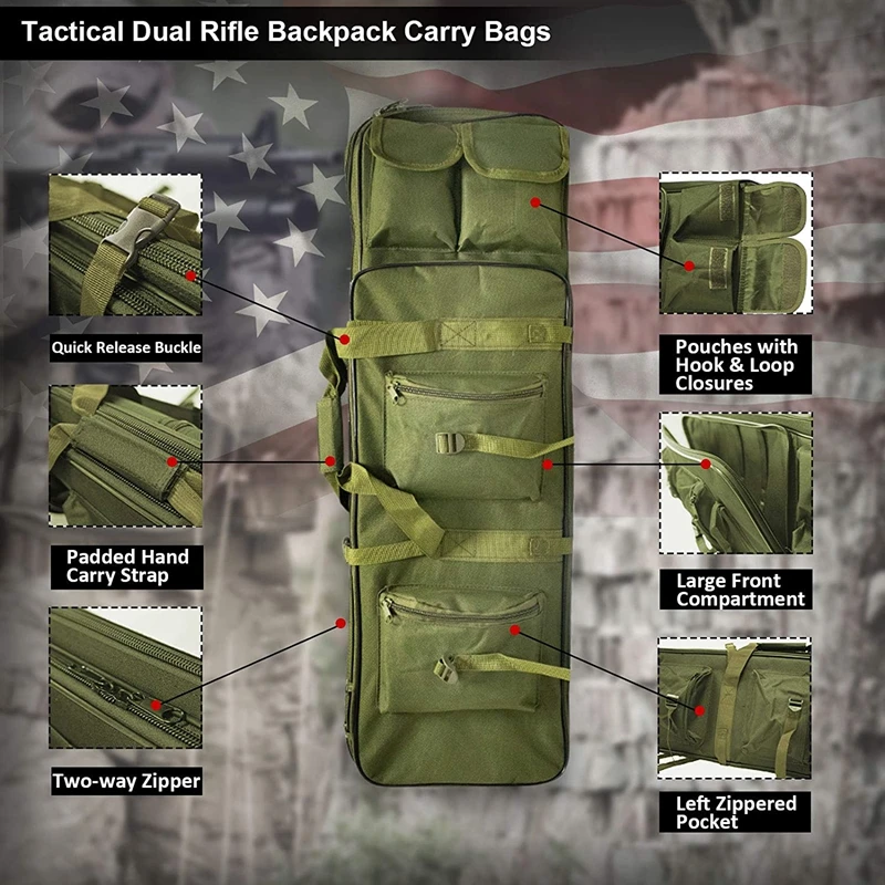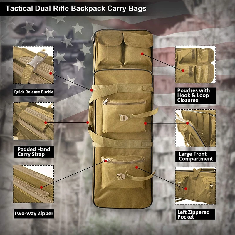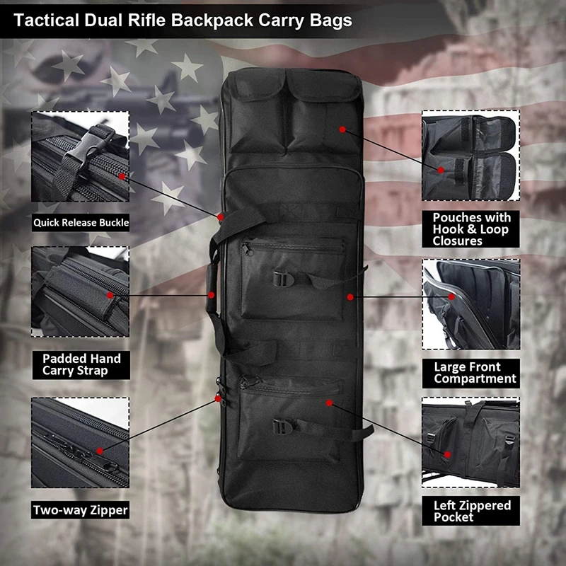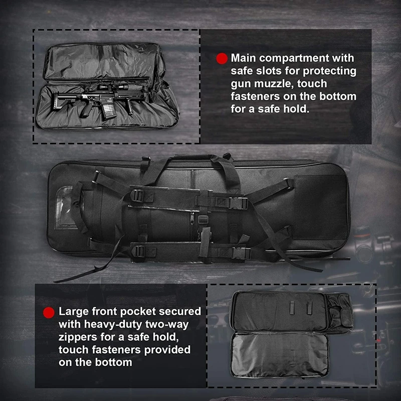 · Contiene una cubierta extendida capaz de almacenar rifle con 83 cm, 95 cm, 100 cm, 115 cm de longitud máxima.