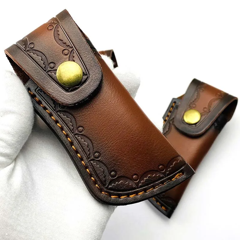3 unids/lote 2 patrones cuero de vaca cuchillo plegable cubierta vaina