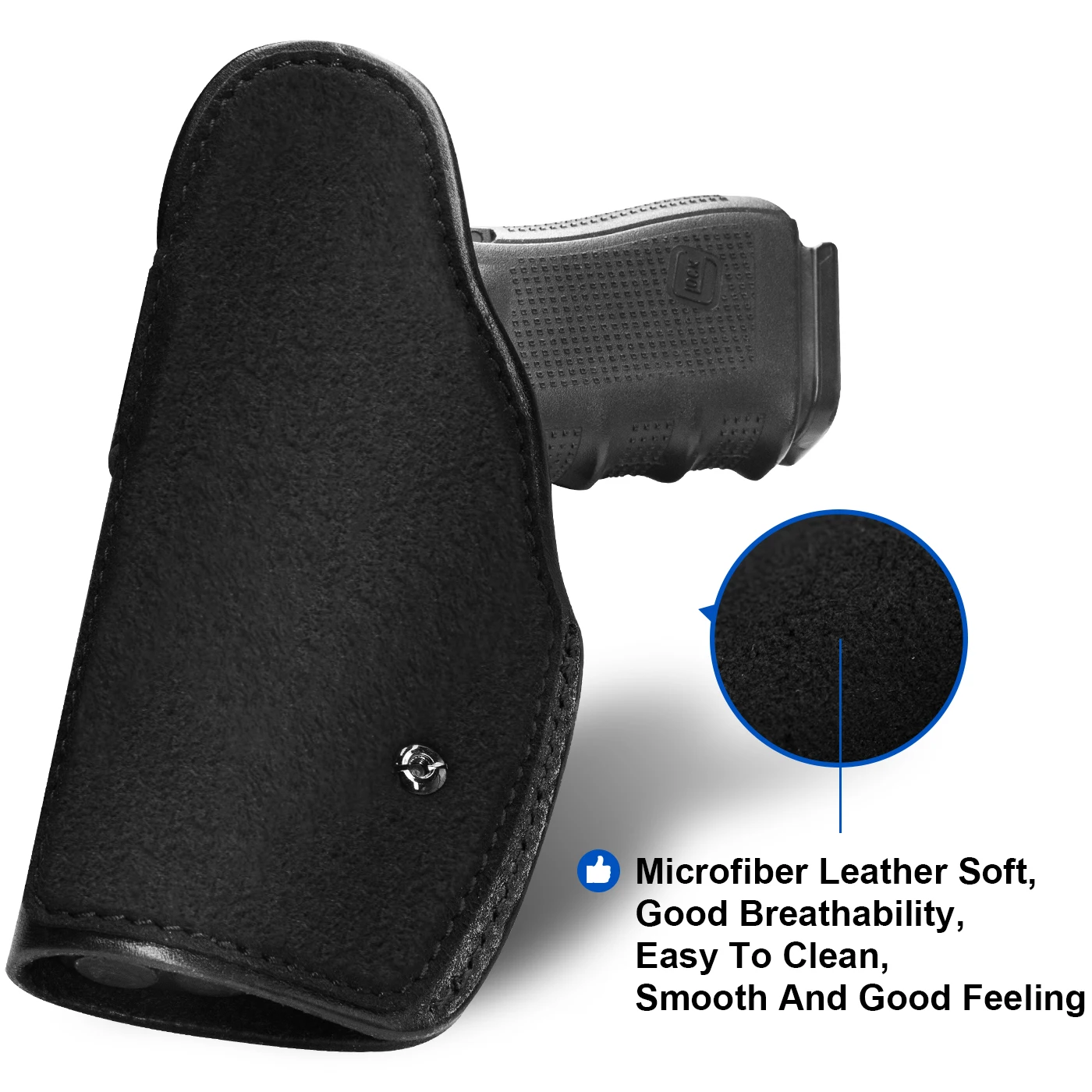 【Pequeño ajuste de retención】 Actualizamos el ajuste de la funda agregando un tornillo hexagonal en la parte inferior para brindar un pequeño ajuste de retención en esta funda de cuero.