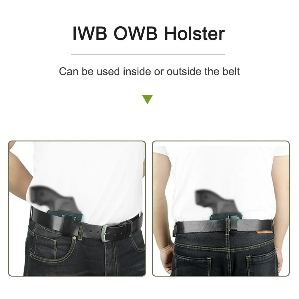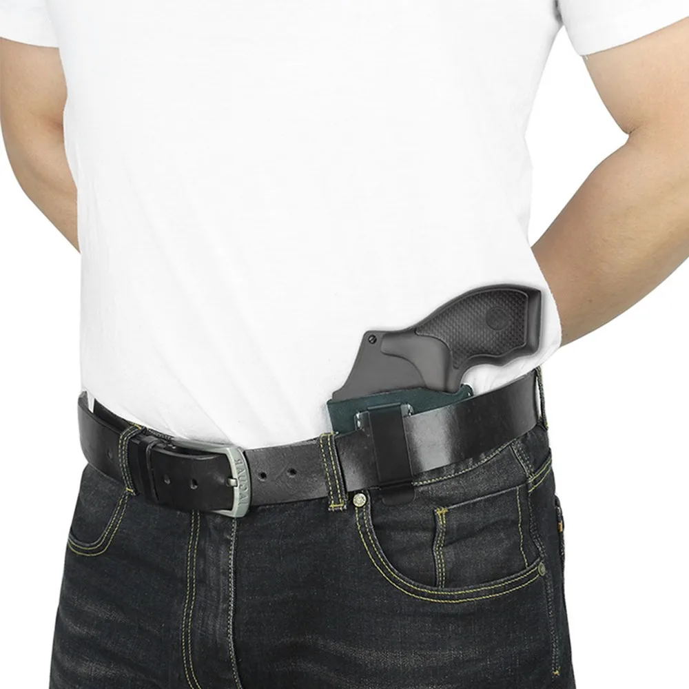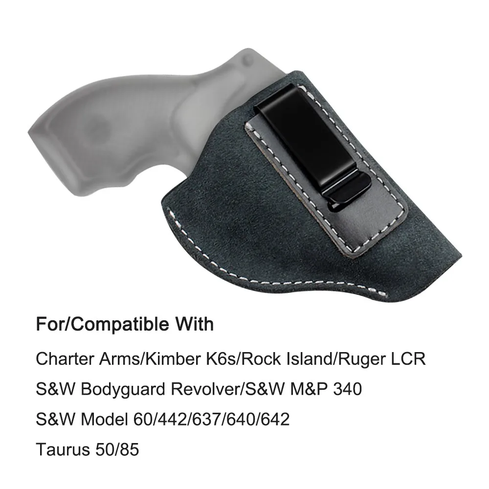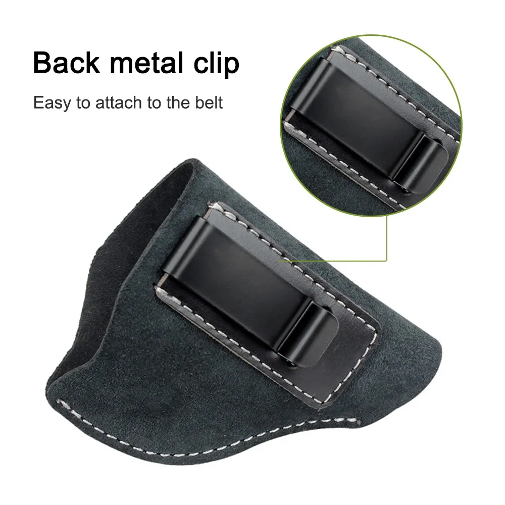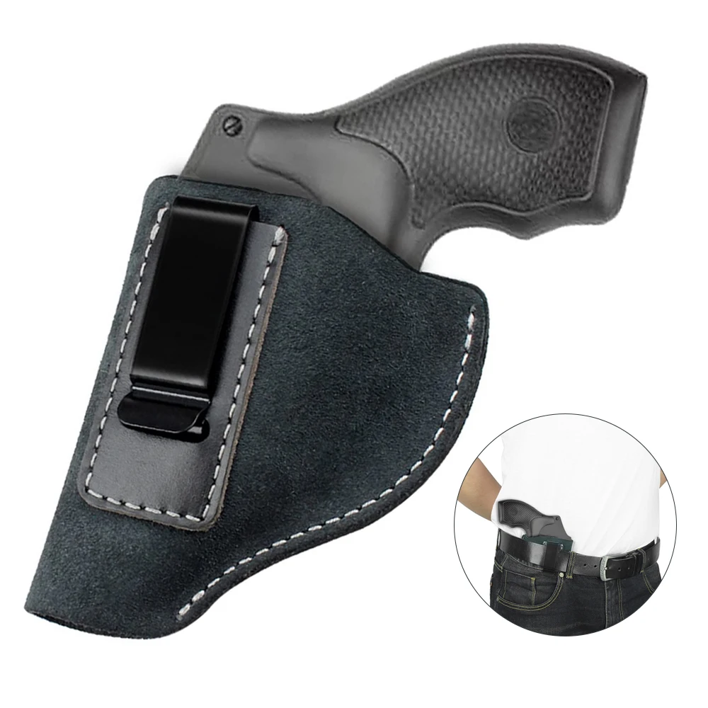 Funda de cuero IWB, funda para pistola de transporte oculta, funda para pistola de cuero de gamuza, Clip para cinturón, marco en J, soporte para revólver para caza, accesorios Airsoft