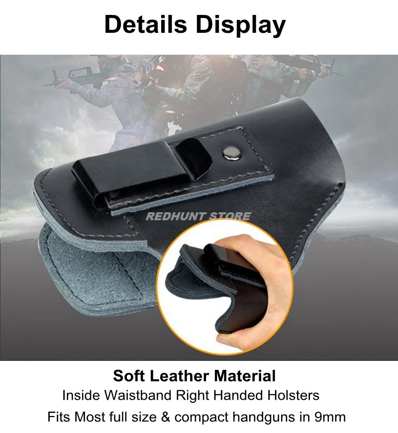 Características del productoMaterial: cuero de alta calidadColor: negro/marrónPeso: aproximadamente 75gModelo de pistola: modelo de pistola universalTamaño: 13cm x 6,5 cmManejo: derecha o izquierda (según su estilo de uso)Uso: perfecto para actividades de Paintball de caza al aire libre