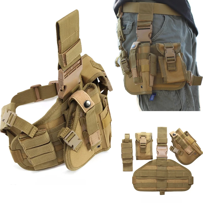 Cubierta de cuero táctica militar para muslo al aire libre, cubierta de cuero impermeable Oxford de camuflaje, caja de pistola Universal Glock 17 19