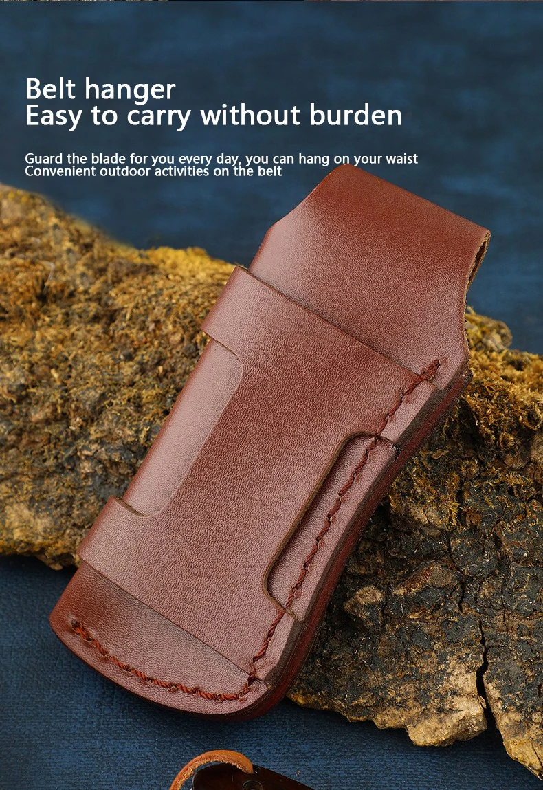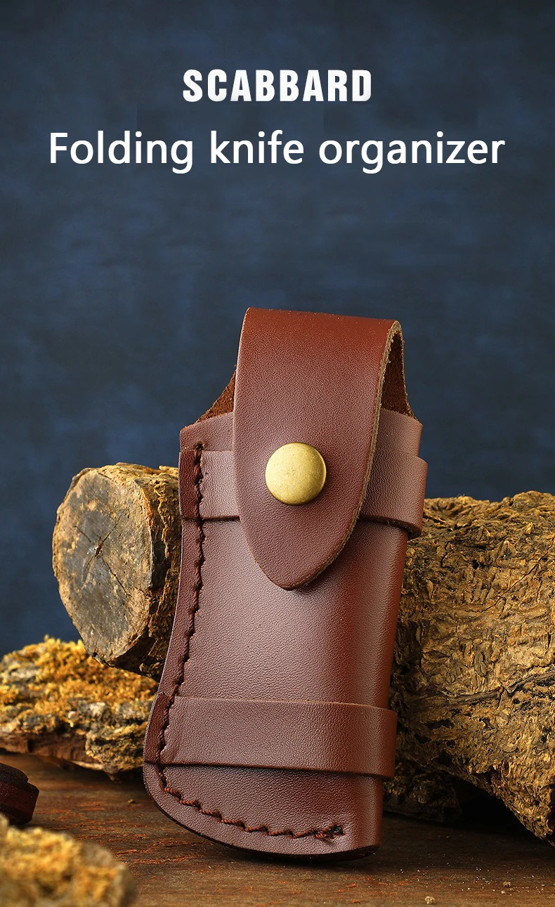 Funda de cuero de vaca para cuchillo, cubierta plegable para almacenamiento de cuchillos al aire libre