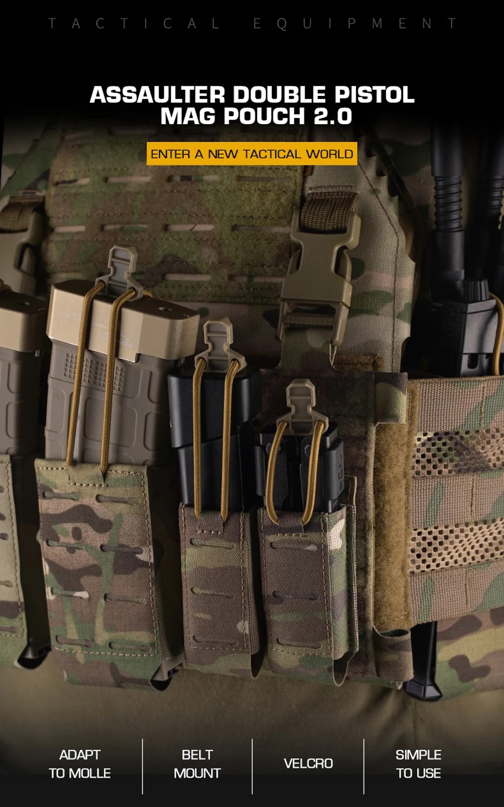 Funda doble MAG de 9mm. 40.45, bolsa MAG suave de aire para caza, cinturón Molle, chaleco, asalto táctico 2,0, equipo