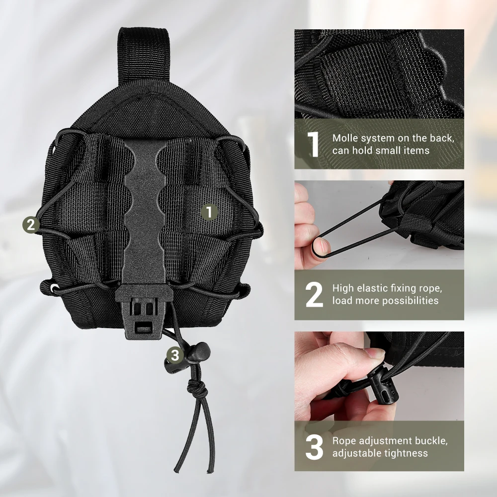 La cuerda de amortiguación y amortiguación de conexión lateral está hecha de material muy elástico con buena tenacidad y resistencia a la tracción, y el tamaño de la bolsa para esposas se puede cambiar ajustando el tapón de la cuerda.