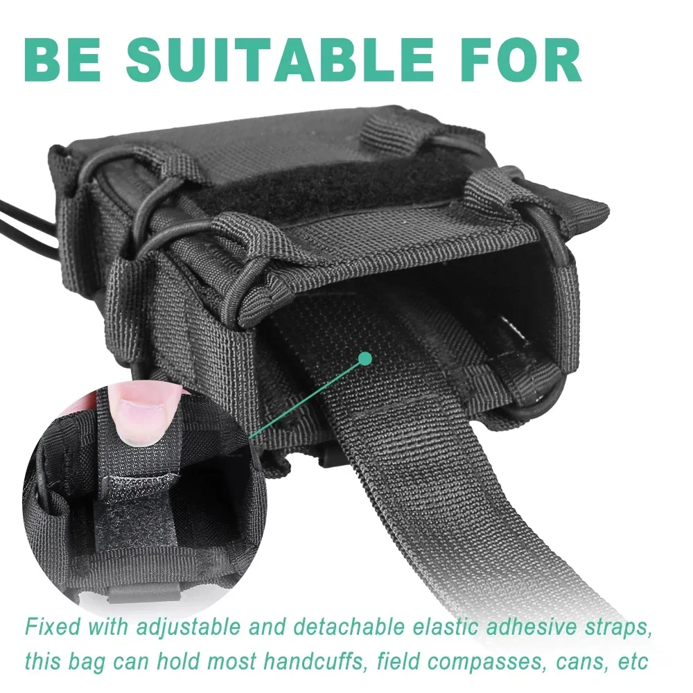 3. 【Diseño ajustable】 Hay una banda elástica ajustable en la parte posterior, que puede ajustar la longitud de la correa según sea necesario.Este diseño hace que la bolsa para esposas sea adecuada tanto para chalecos tácticos como para la mayoría de los cinturones.
