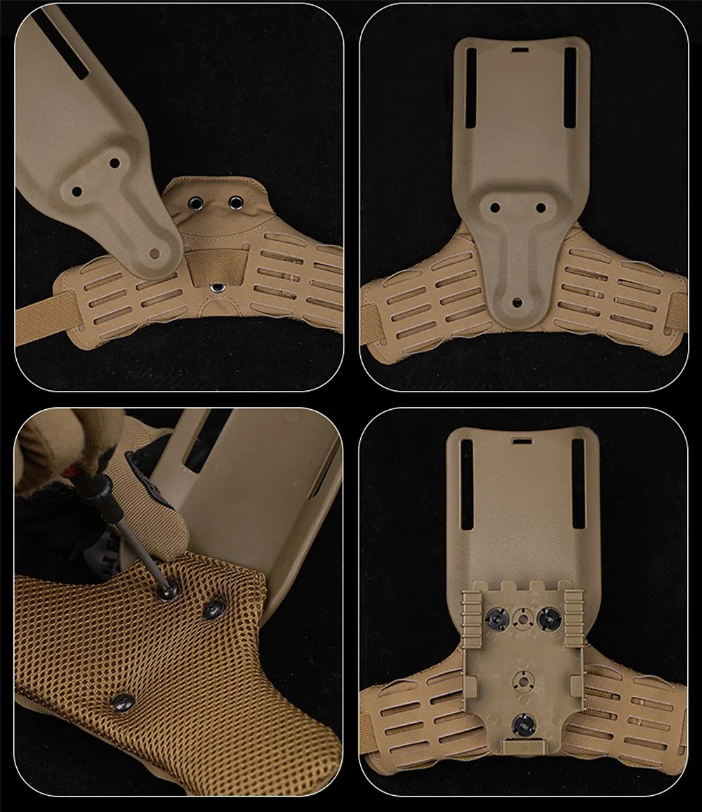 Thighs can be left or right, laser cut molle system can carry any molle functional pouches.