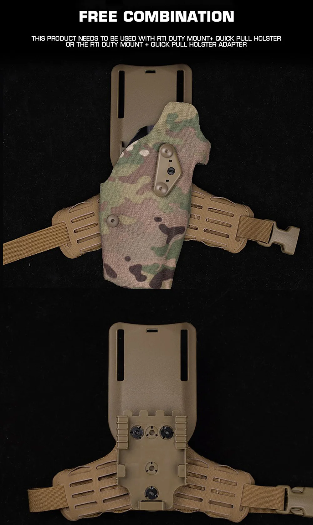 This product must be used with RTI duty mount+ quick pull holster, or the RTI duty mount + quick pull holster adapter.