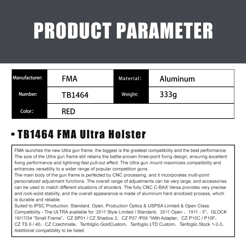 Funda FMA Ultra, marco FMA Ultra anodizado duro de aluminio para competiciones de clase estándar de tiro duradero