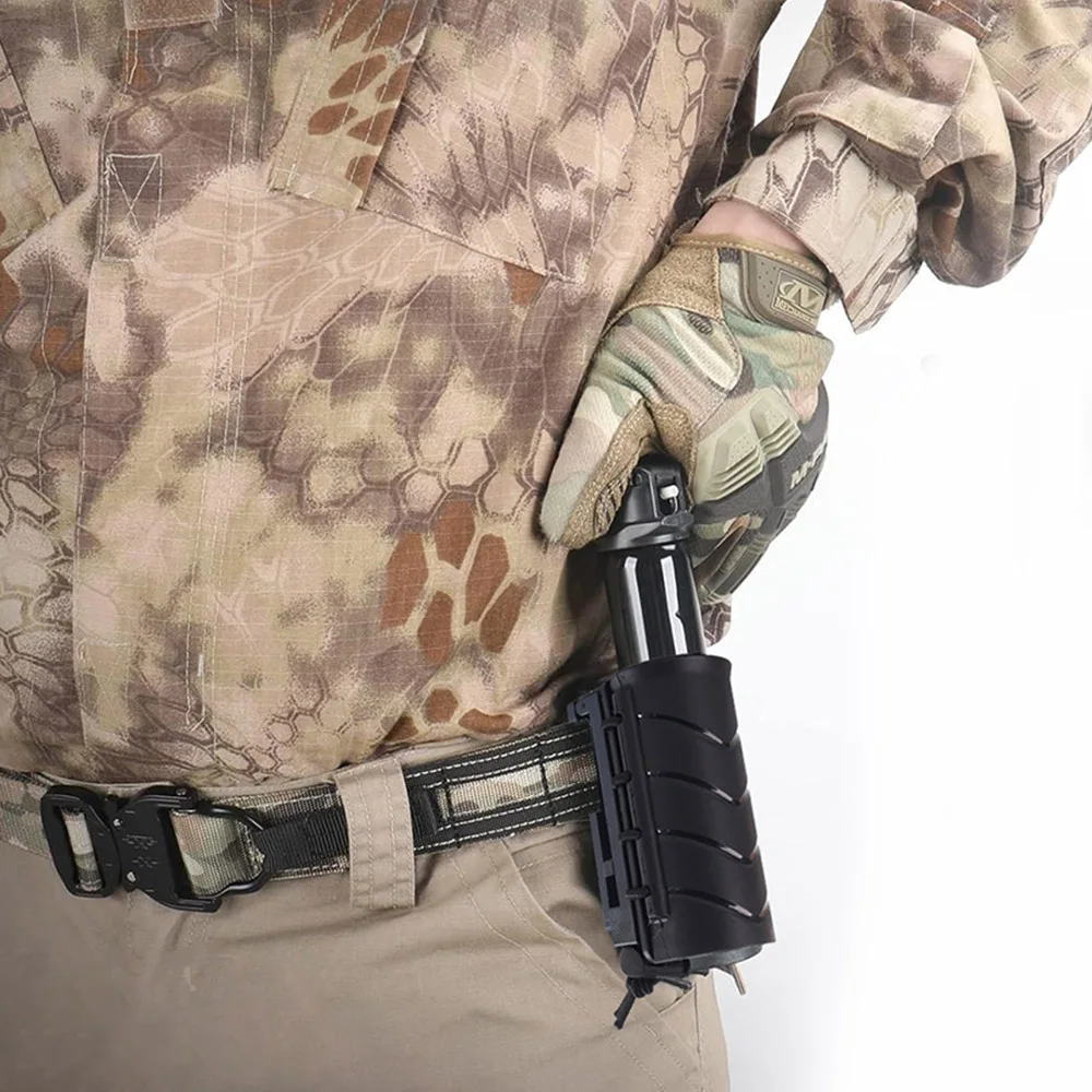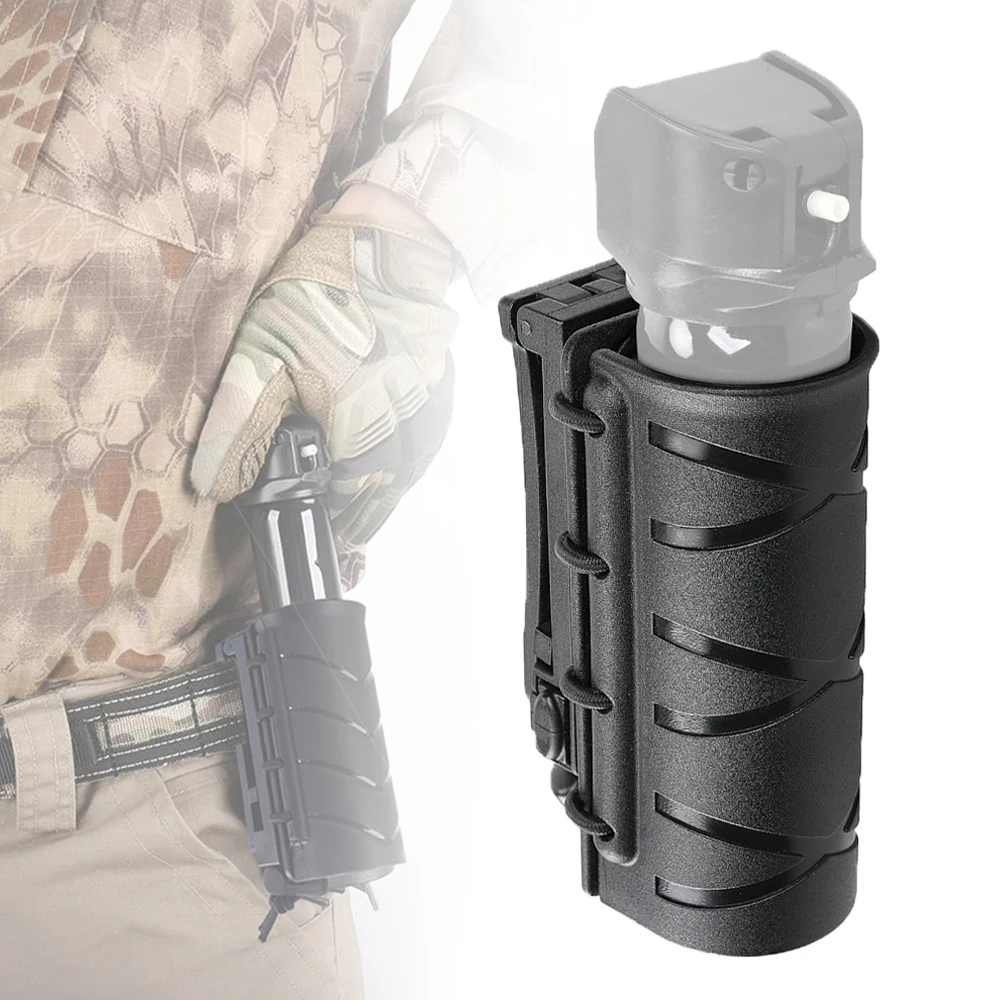 El soporte para pulverizador de pimienta presenta un diseño superior abierto y el mecanismo giratorio de 360 grados admite un extracción rápida hacia abajo, hacia arriba o hacia el lado hasta 1,5 segundos en el objetivo.La funda pulverizadora de pimienta se puede utilizar ampliamente en el control antidisturbios, el control de multitudes y la autodefensa.