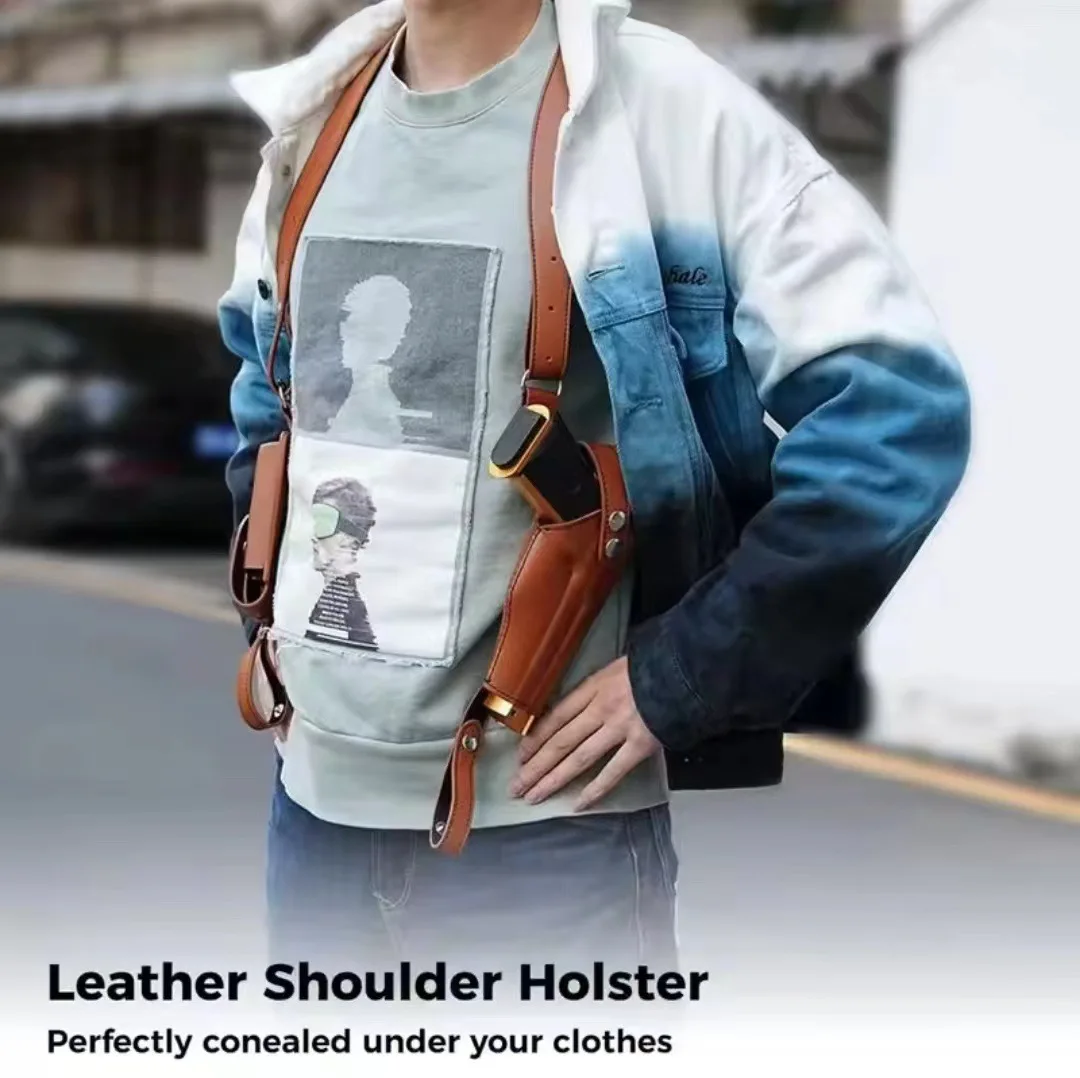 Hecho de cuero PU duradero con una textura refinada, ideal para usar debajo de trajes o chaquetas para un transporte oculto de forma natural.