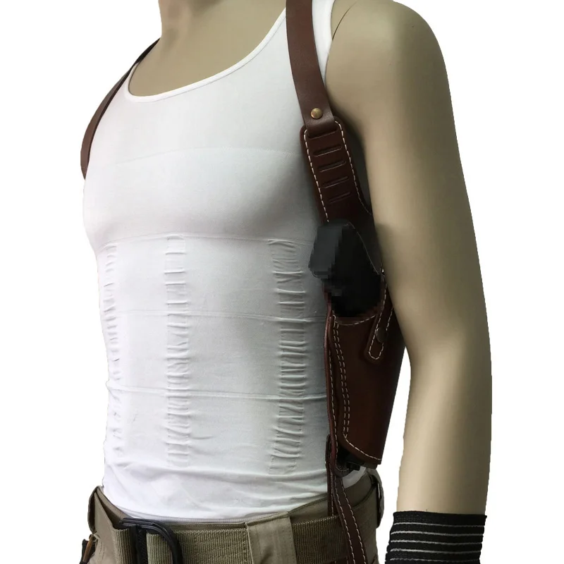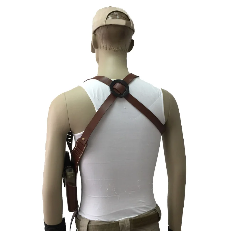 Funda de hombro táctica de cuero genuino, funda para pistola de mano derecha, pistola oculta, pistola, llevar, accesorios de caza para tiro