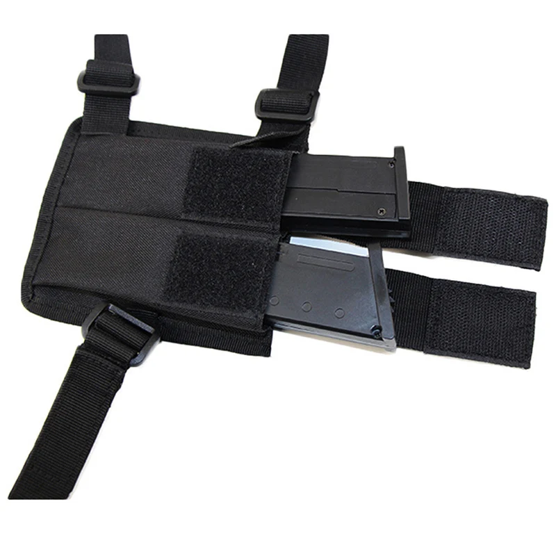 Se pueden voltear para que queden ambidiestro: este diseño le permite configurarlos para usarlos en el lado derecho o izquierdo.Su brazo lateral está llevado por un lado y por el otro hay una doble bolsa para cargadores.