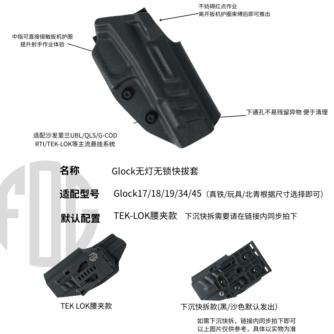 Modelos compatibles: GLK17/18/19/34/45Estilo de clip de cintura TEK-LOK:Versión de liberación rápida hundida