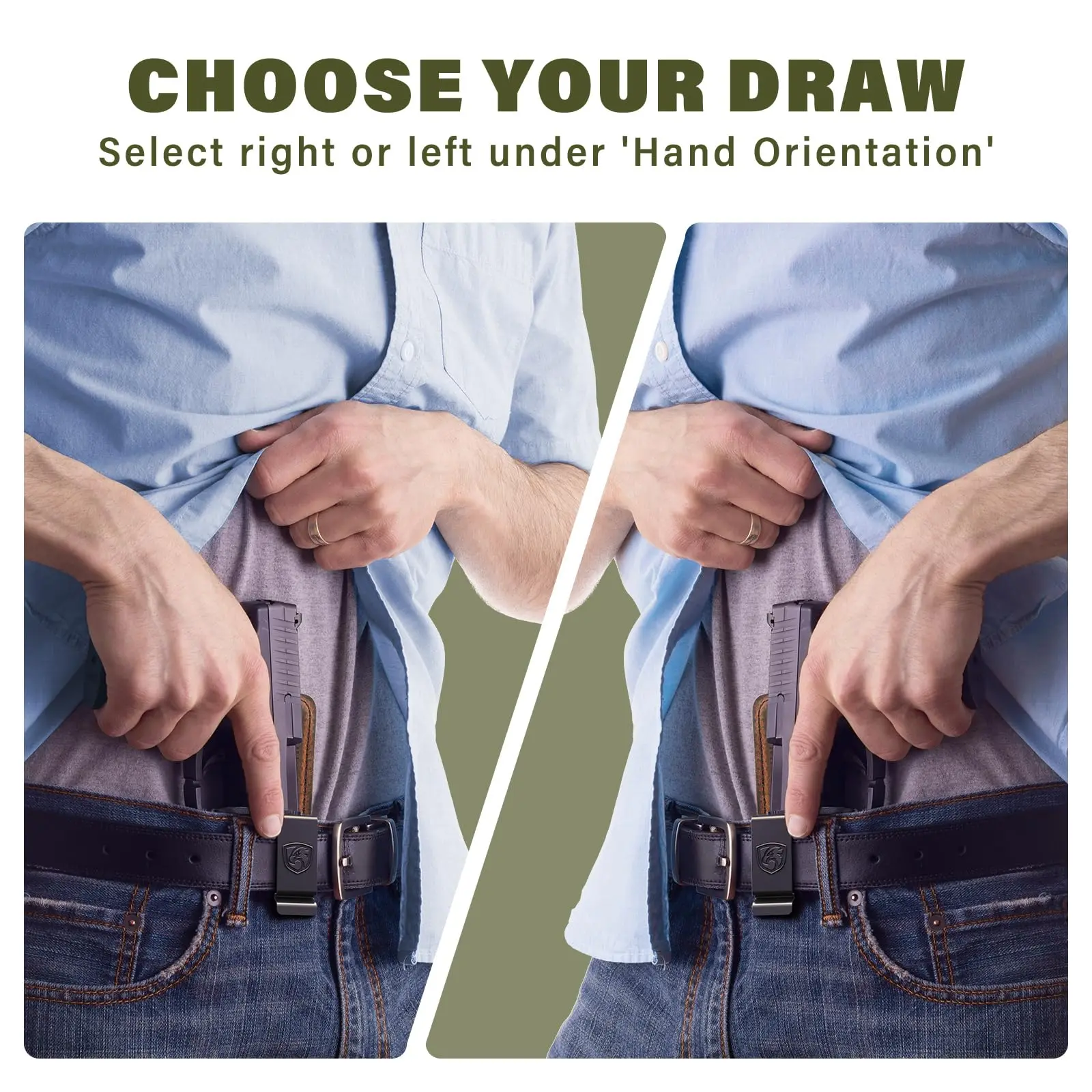 Para Glock 43,43X,43X MOS, funda de cuero IWB, funda de transporte oculta, cinturilla interior de apéndice, cinturones de 1,5 "-1,75", mano derecha