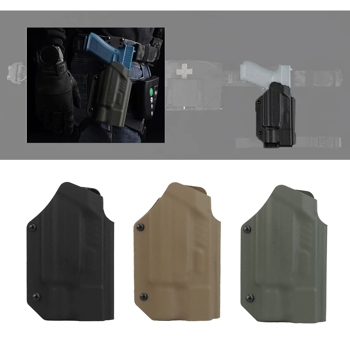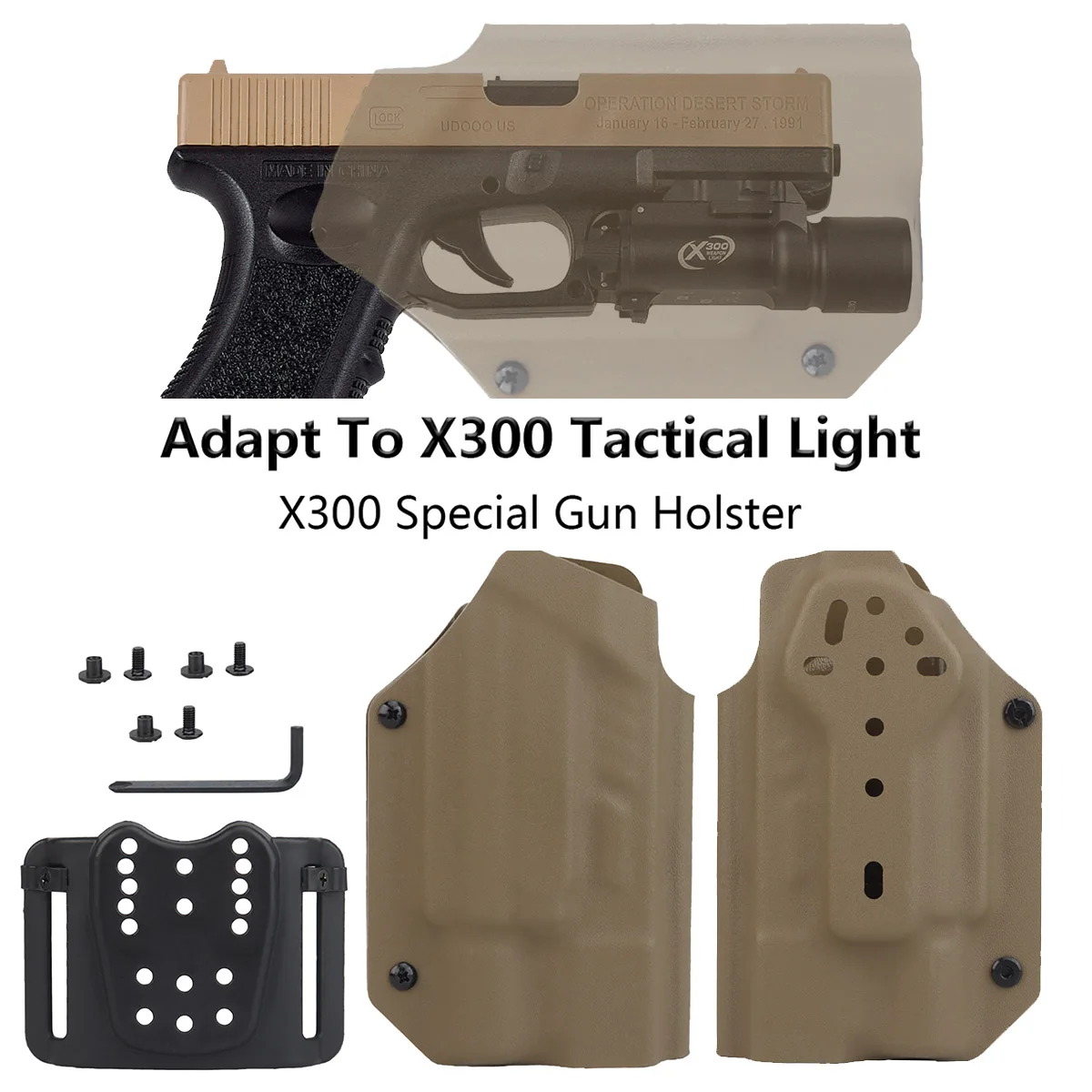 Funda Kydex ligera de 9mm para Glock 17 19 19X 22 23 34 35 45 SF Surefir X300 Ultra X300U, fundas para linterna de caza Airsoft