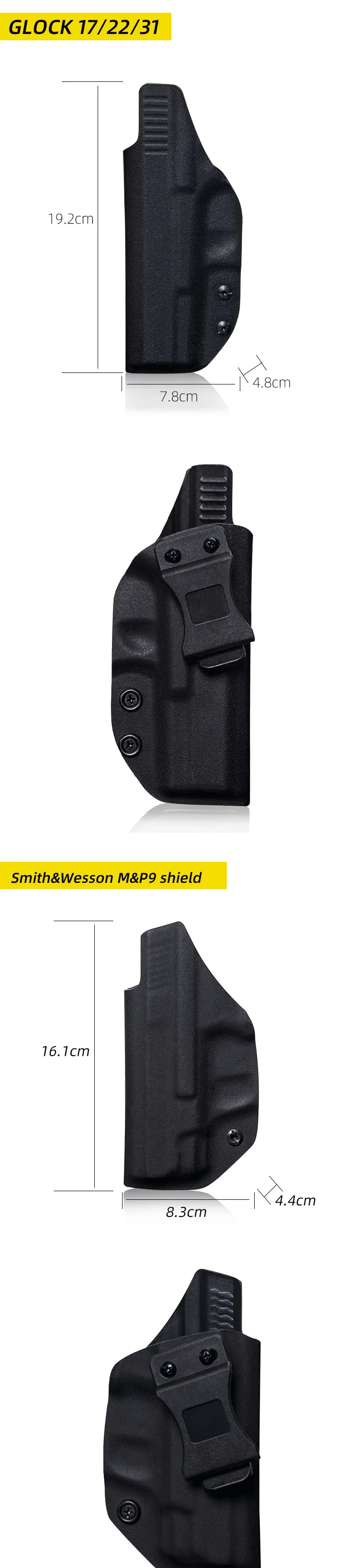Funda Kydex para pistola Taurus G2c S & W Glock 17/22/31/43 Sig P365 Colt 1911 CZ, funda de pistola IWB 9MM, transporte oculto