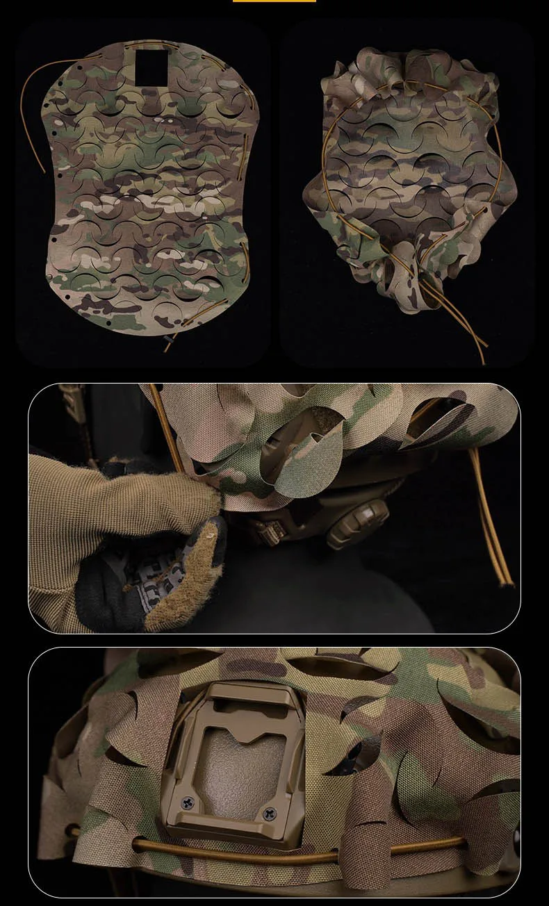 Funda ligera para casco táctico con corte láser y camuflaje biónico Ghillie para caza al aire libre y Airsoft