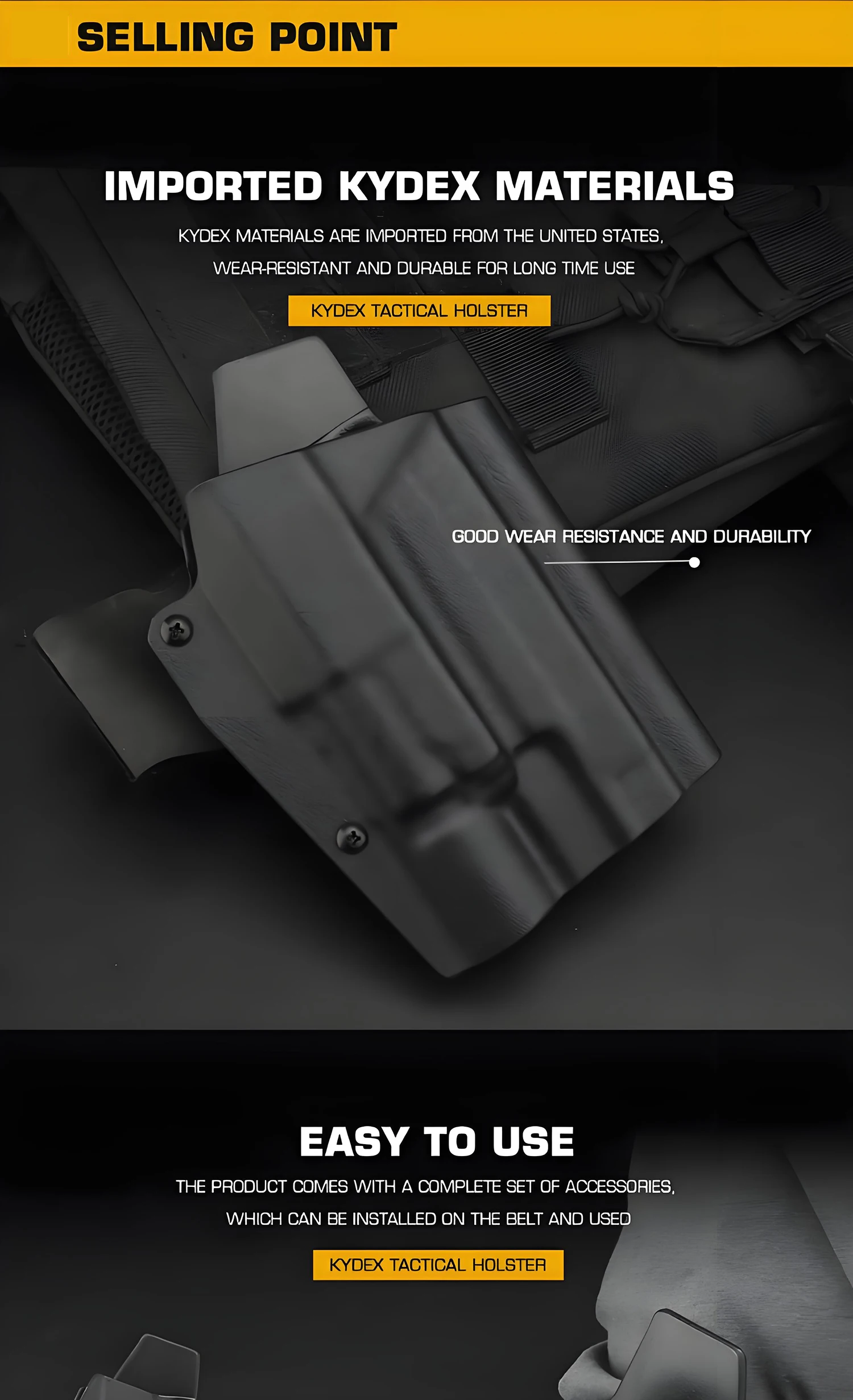 ✔ Material Kydex premium importado de EE. UU.: Construido con Kydex de alta calidad fabricado en EE. UU., conocido por su excelente resistencia al desgaste y durabilidad.Es rígido, liviano (sólo 0,14 kg) y mantiene su forma para siempre.