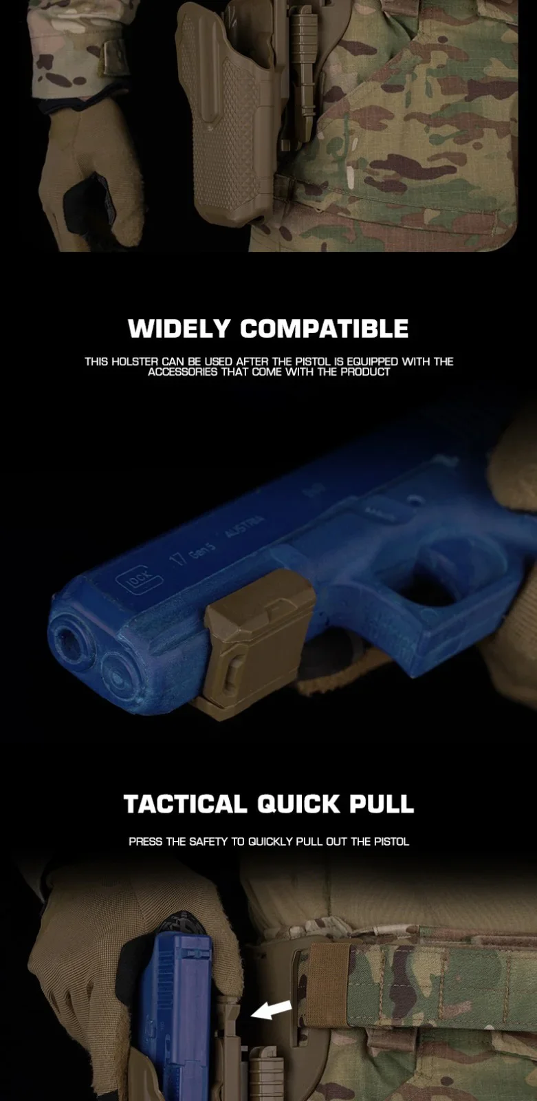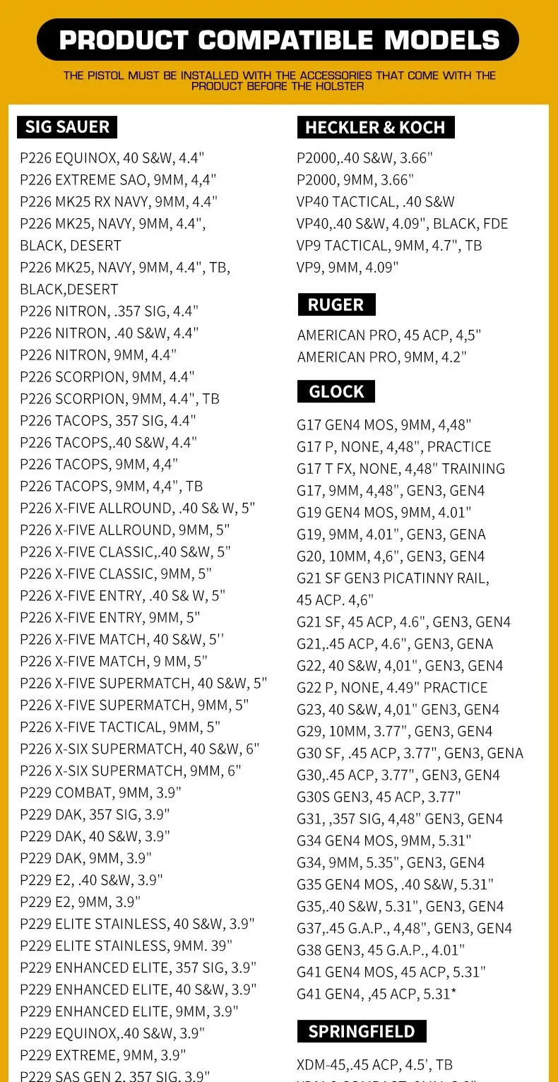 -La pistola debe estar equipada con sus propios accesorios antes de usar la funda.