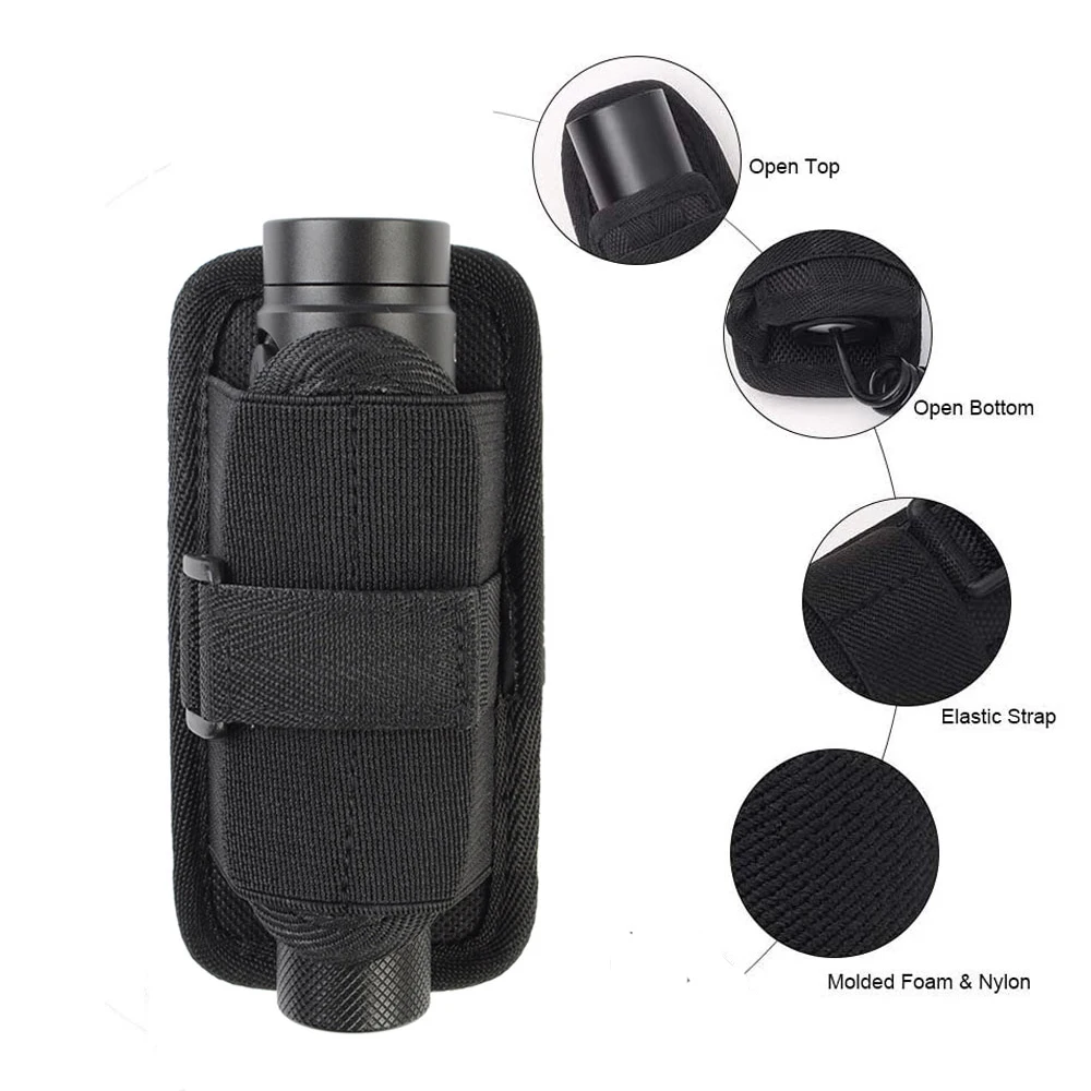 Funda de transporte para linterna al aire libre, Clip giratorio de 360 grados, cubierta de nailon para antorcha, bolsa de transporte para caza y Camping