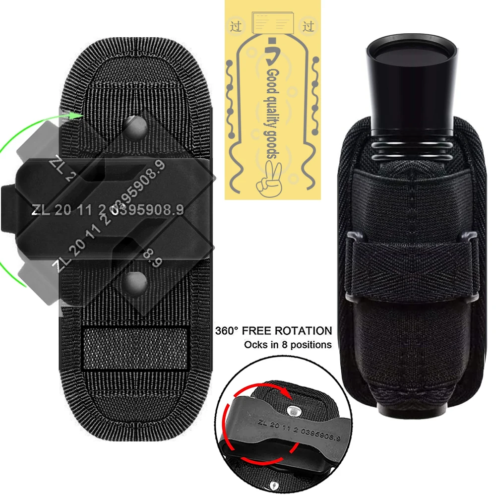 Funda para linterna giratoria de 360 grados para caza táctica al aire libre, funda para cinturón, funda para linterna portátil