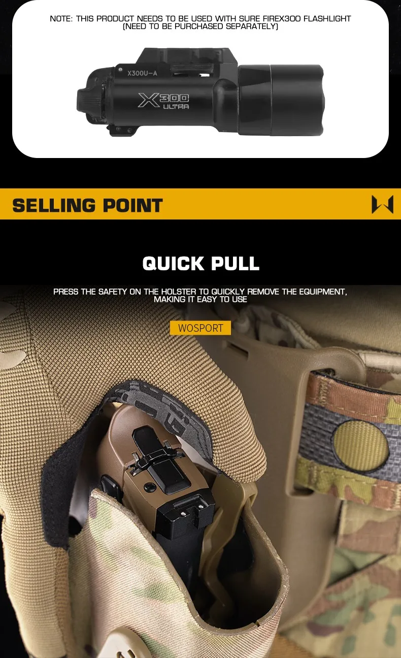 Funda para linterna P320 + X300, funda táctica de Extracción rápida con funda de tela para pierna G, sistema de liberación rápida QLS Airsoft Holst