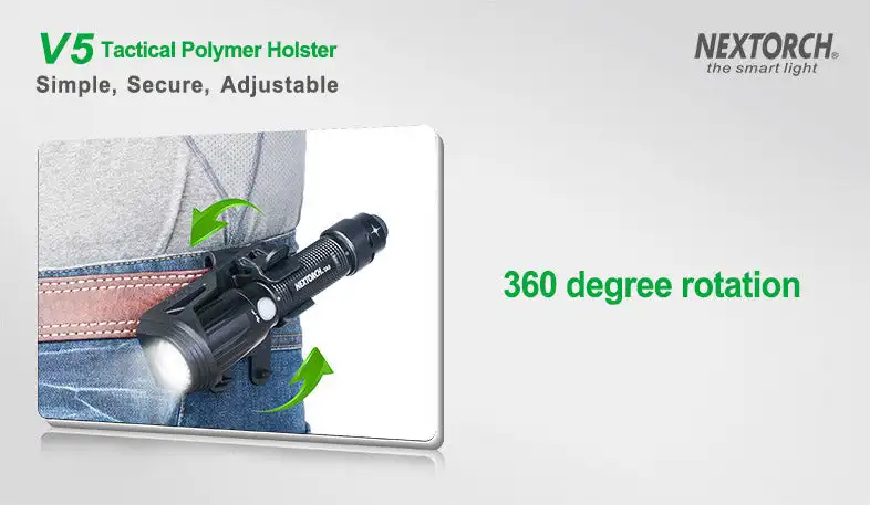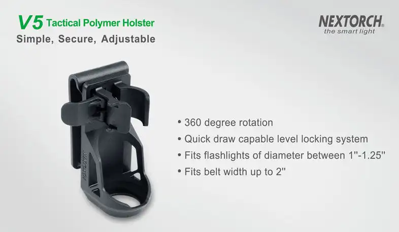 Funda para linterna táctica NEXTORCH V5, 360 ° giratoria, con cerradura, para linternas de alta potencia con un diámetro del barril de 1-1,25 pulgadas.