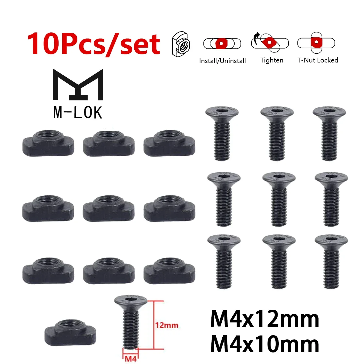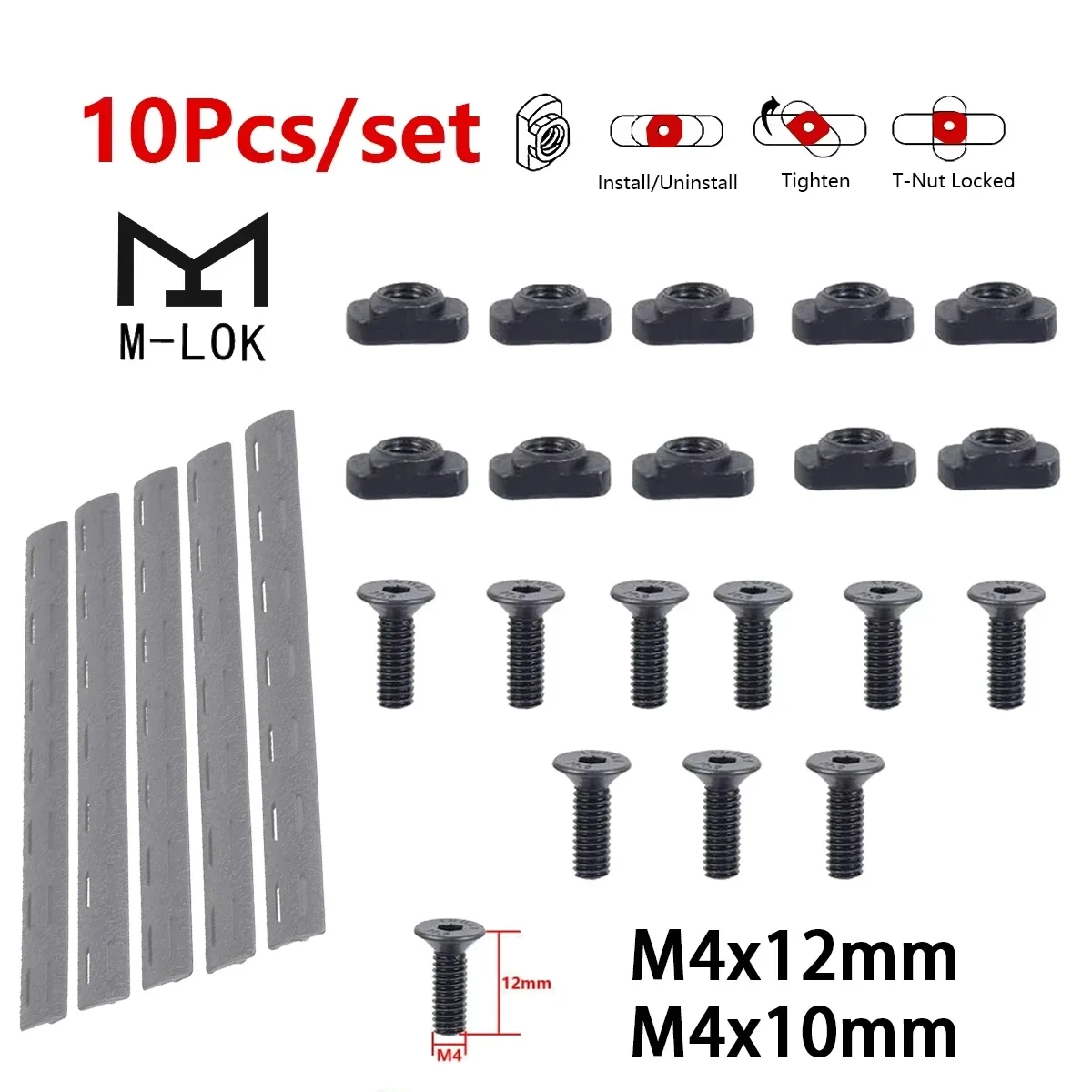 Funda de M-LOK, 10 unidades/juego, tornillo de M-LOK y tuerca, juego de repuesto de tornillo de tuerca en T para riel MLOK Keymod, bolsa protectora