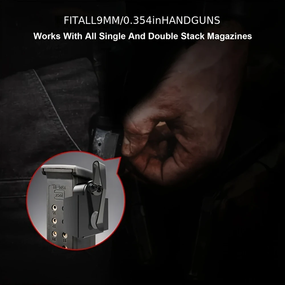 ✔️ DESPLOYABLE RÁPIDAMENTE EN LAS SITUACIONES DE TRATINACIÓN – 1) Primero sujételo a su bolsillo. 2) Luego desliza tu revista en el imán. 3) Para recuperarlo, simplemente tire con firmeza usando uno de los dedos para separar el cargador del imán mientras tira.