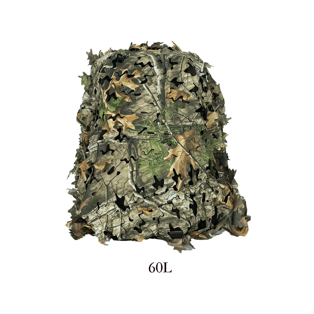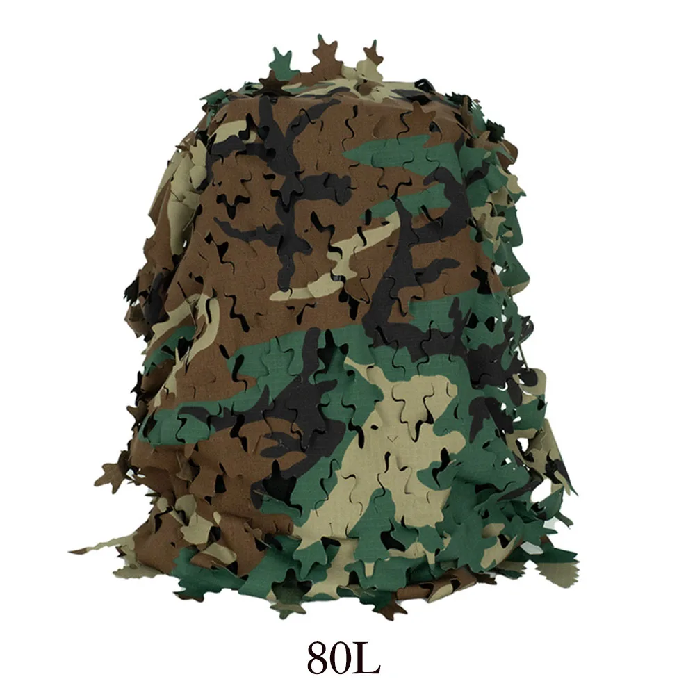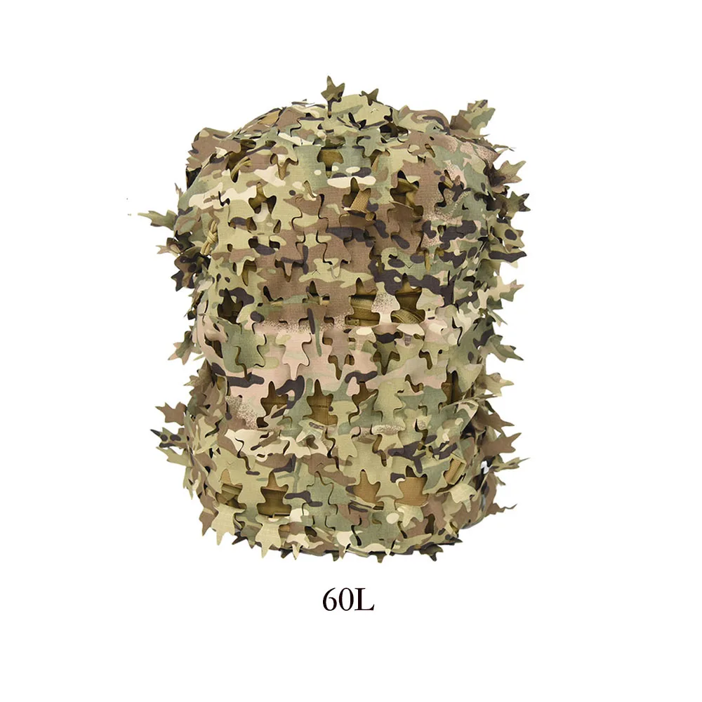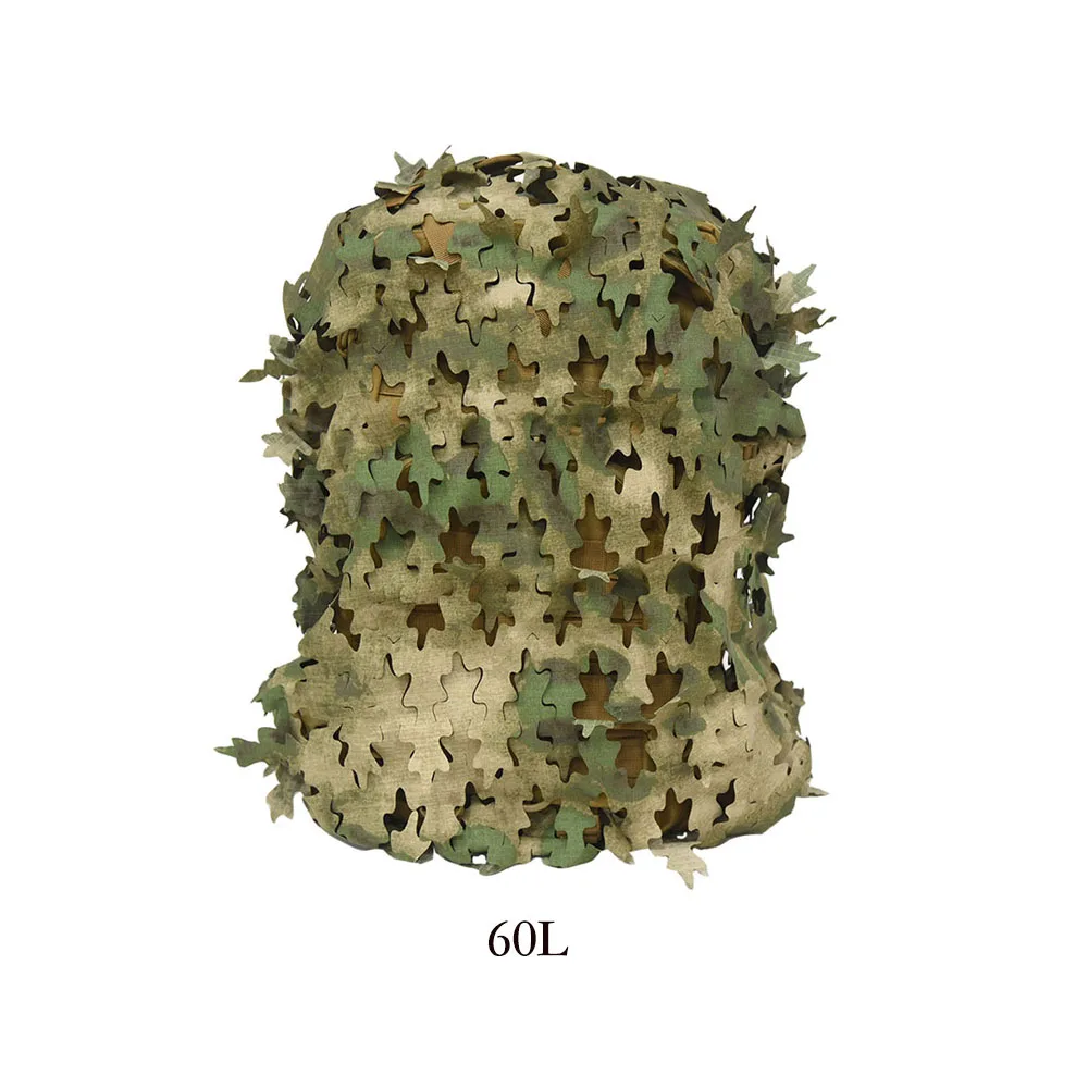 Funda de mochila de red con forma de hoja biónica 3D, 60L 80L, cubierta de mochila de caza cortada con láser, Paintball, paracaidista