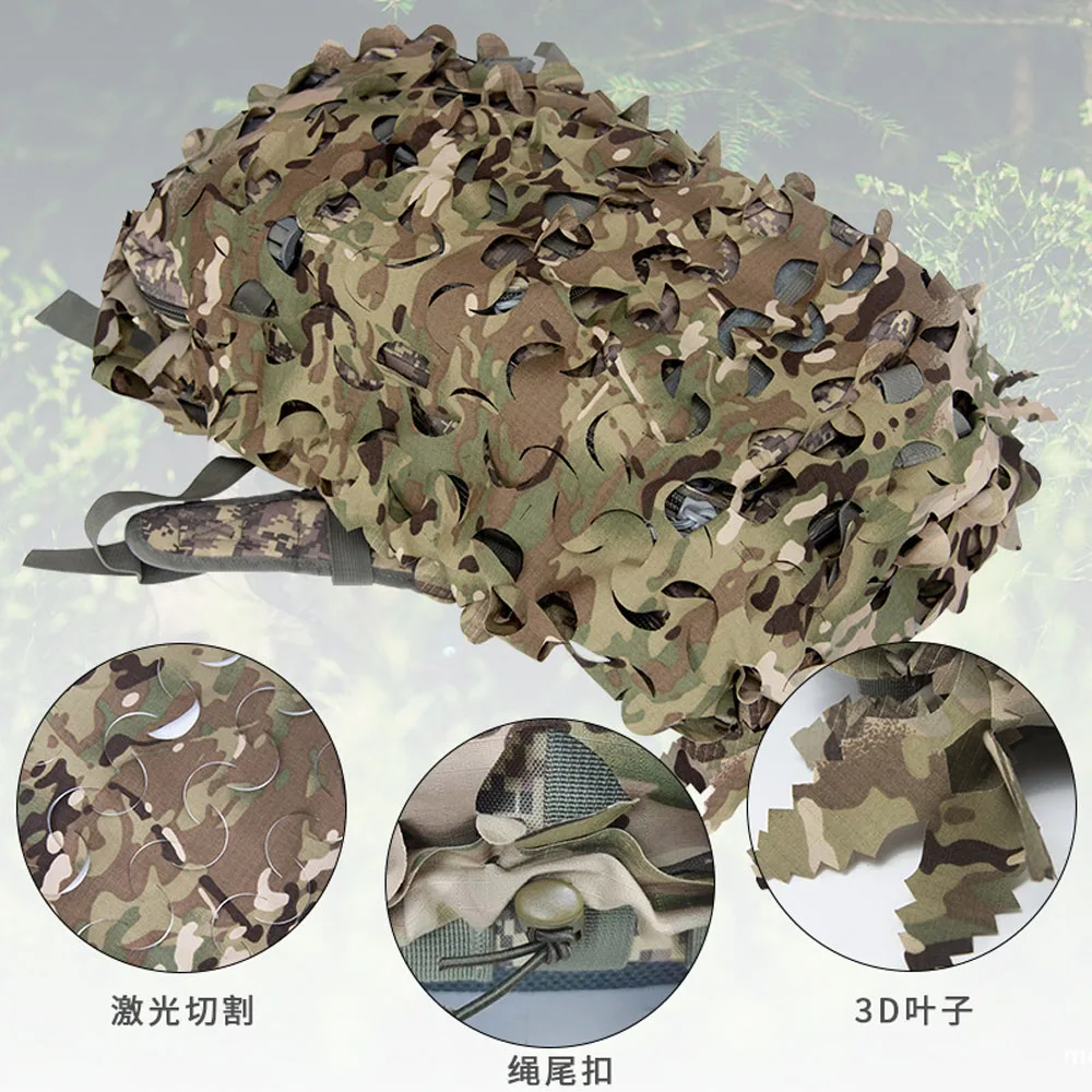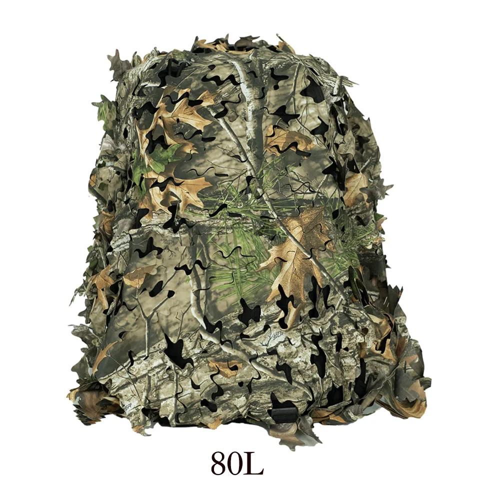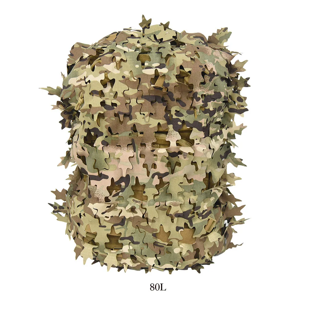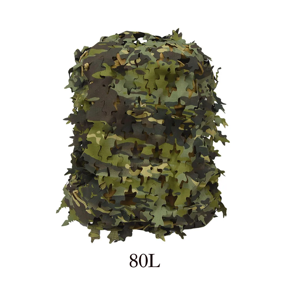 Funda de mochila de red con forma de hoja biónica 3D, 60L 80L, cubierta de mochila de caza cortada con láser, Paintball, paracaidista