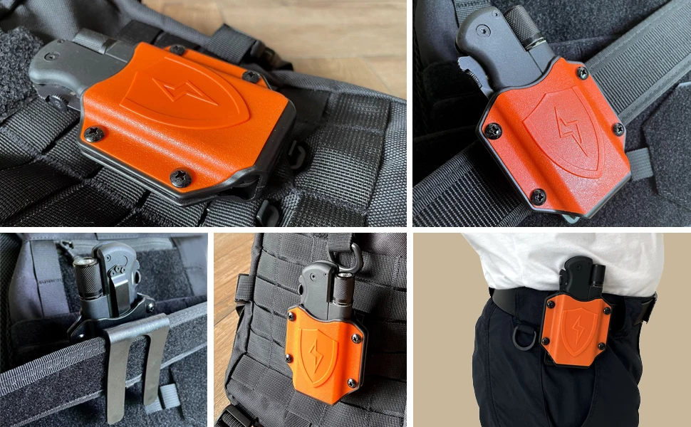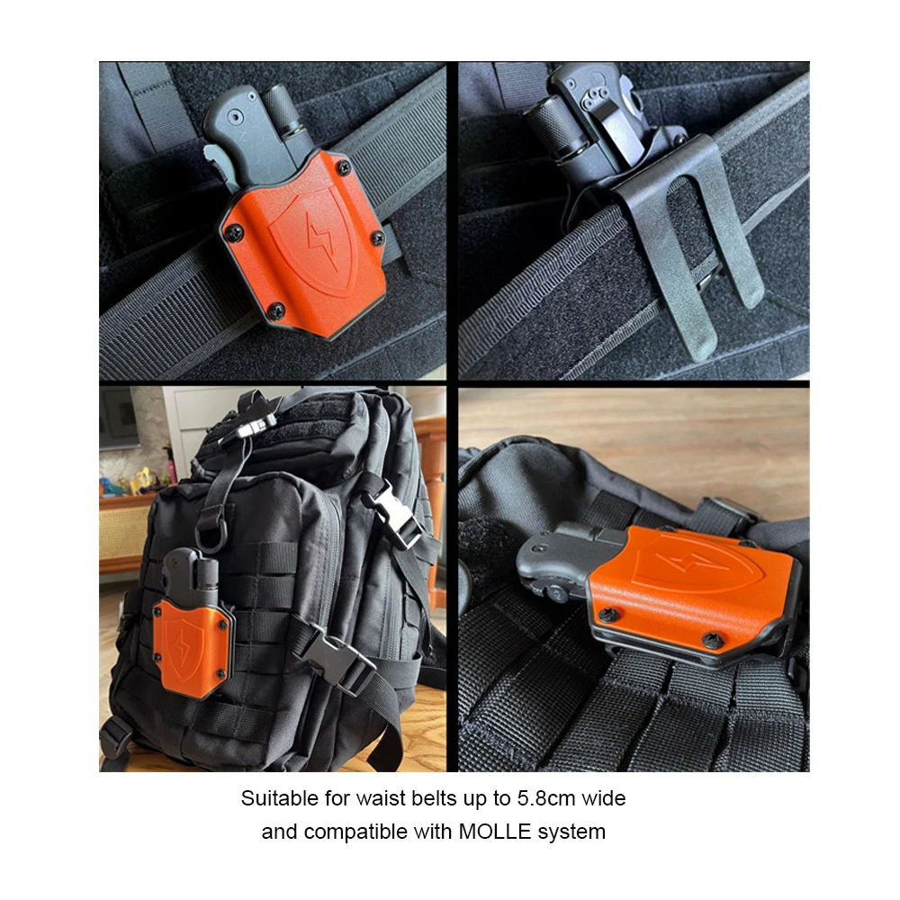 - El clip para cinturón se puede girar 360 grados, se adapta a cinturones de trabajo de la ley de 2" (50 mm) y 2,8 mm de ancho y es compatible con molle