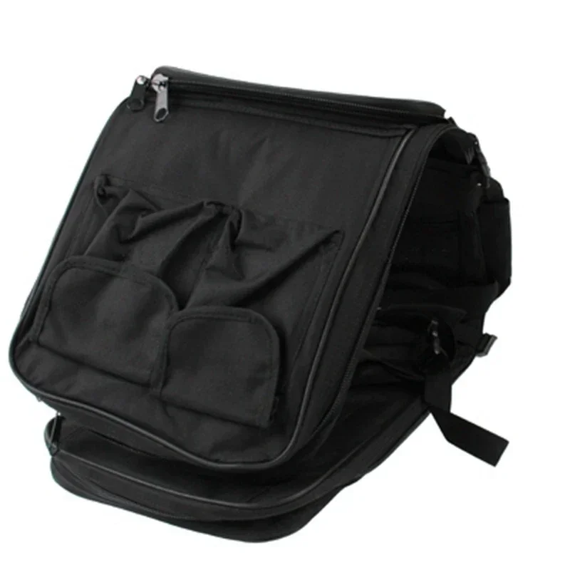 · 2 bolsillos pequeños con cremallera y 2 con tapa de velcro para llevar revistas o equipos pequeños.